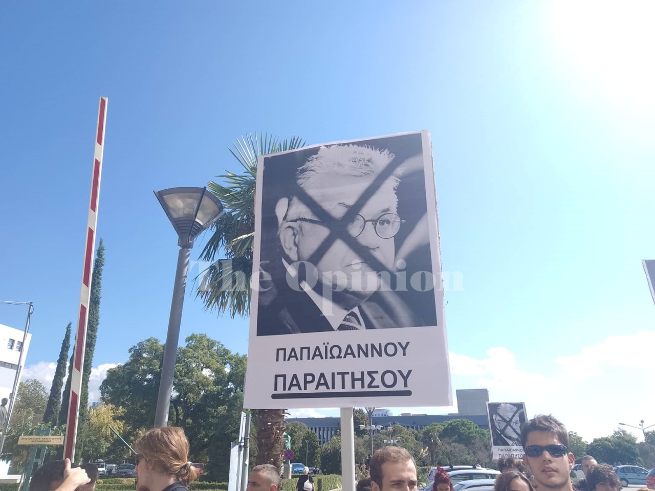 Φωνάζουν συνθήματα κατά του πρύτανη Νίκου Παπαϊωάννου αλλά και κατά της υπουργού Παιδείας Νίκης Κεραμεως.