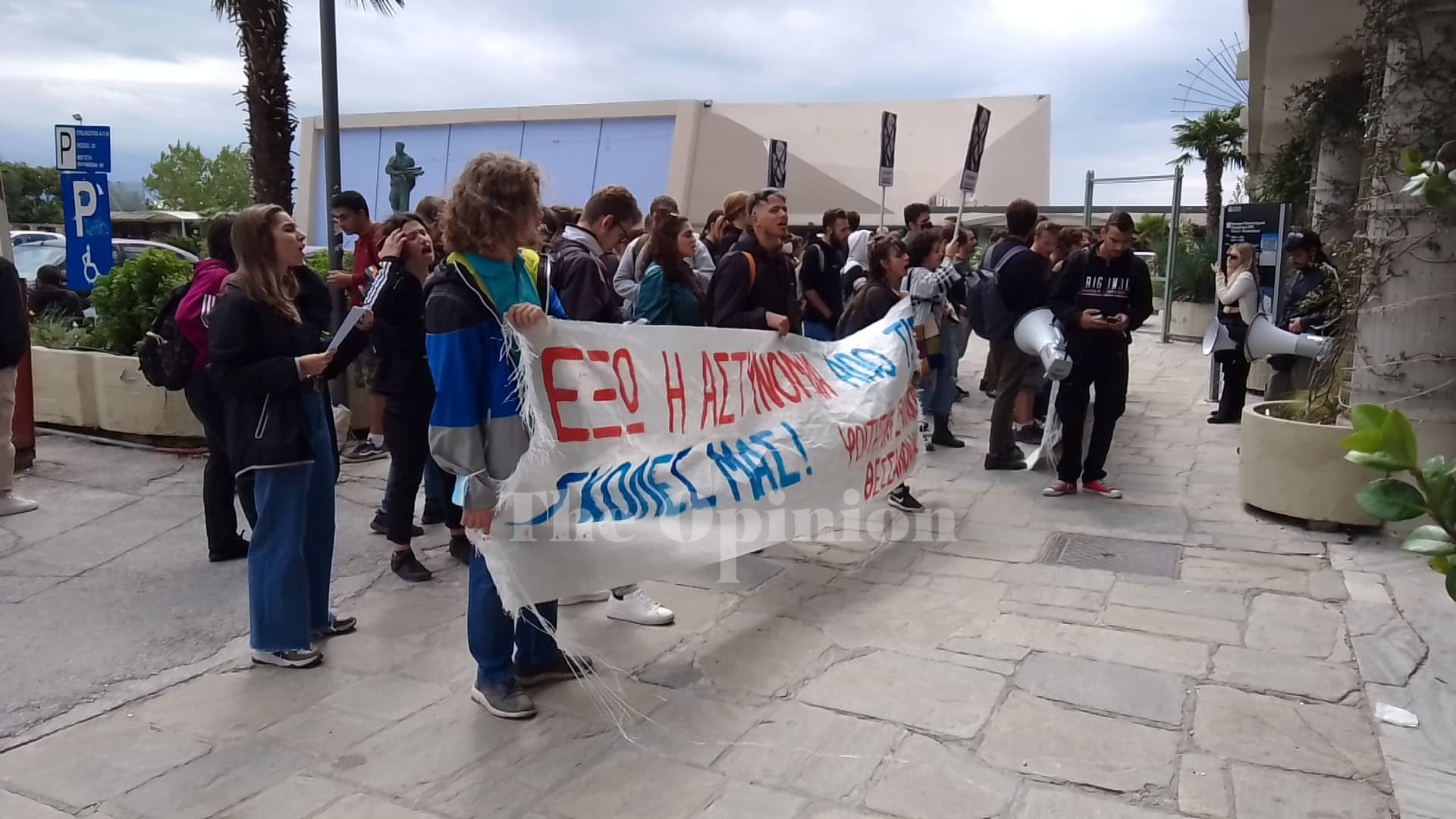 Οι φοιτητές διαμαρτύρονται για την παρουσία της αστυνομίας στο campus του ΑΠΘ. Παράλληλα καταδικάζουν και την επίθεση αστυνομικών δυνάμεων σε φοιτητές κατά τη διάρκεια συναυλίας εντός του ΑΠΘ στα γρασίδια της φιλοσοφικής την περασμένη εβδομάδα.