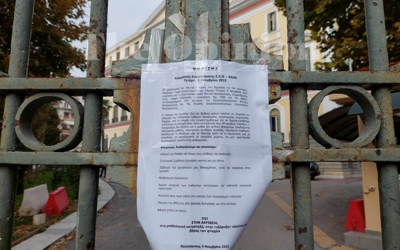 Το κοινό ψήφισμα από την σημερινή απεργιακή συγκέντρωση είχε σκοπό να κατατεθεί από εκπροσώπους του ΕΚΘ, της ΓΣΕΕ και ΑΔΕΔΥ.