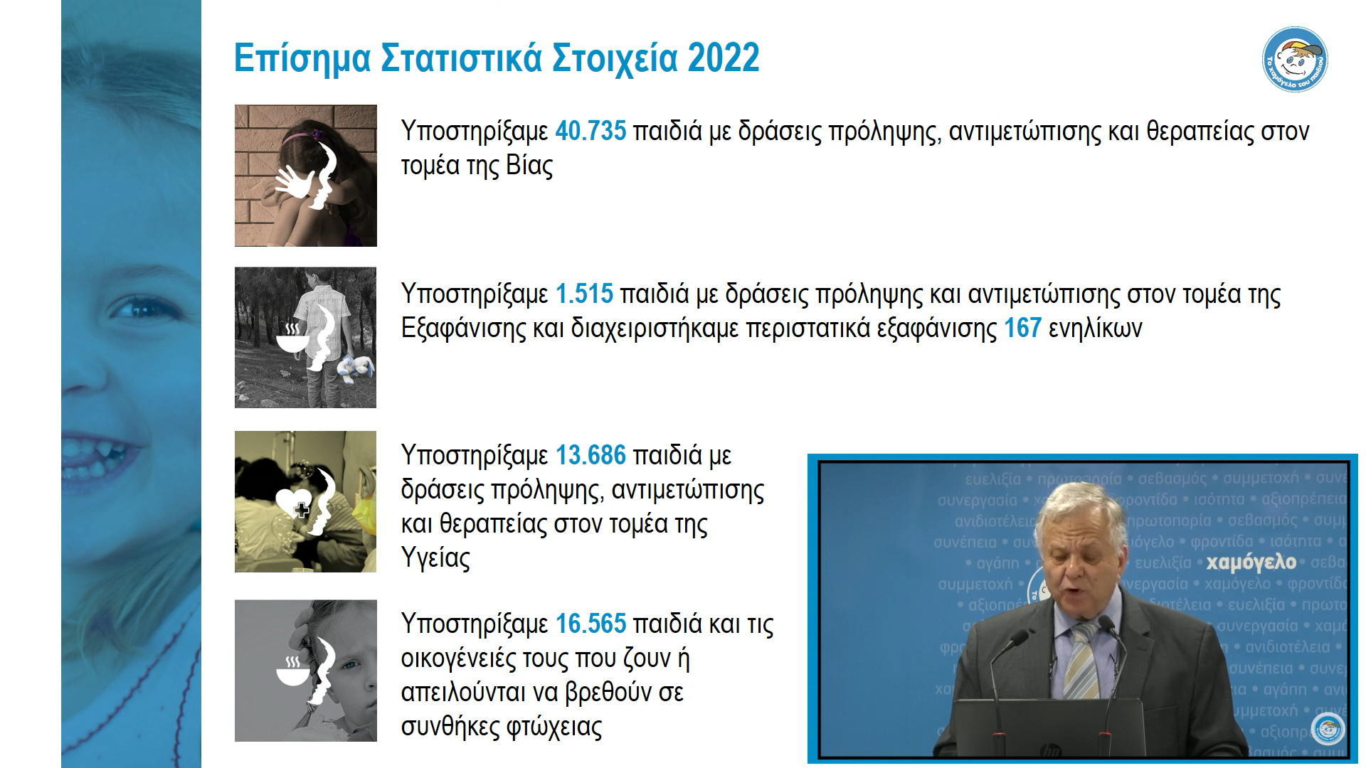 Τον ετήσιο απολογισμό των δράσεων και του συνολικού έργου του «Χαμόγελου του Παιδιού» παρουσίασε όπως κάθε χρόνο ο Κώστας Γιαννόπουλος, πρόεδρος του διοικητικού συμβουλίου του οργανισμού, για θέματα που αφορούν την στήριξη παιδιών και των οικογενειών τους, με τους επικεφαλής από κάθε τομέα να αναλύουν εκτενώς την δράση του κάθε άξονα.