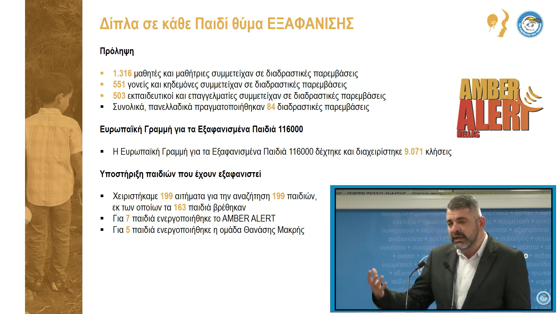Ο συντονιστής του Εθνικού Κέντρου για τις Εξαφανίσεις και τα Παιδιά Θύματα Εκμετάλλευσης, του Οργανισμού, Στέφανος Αλεβίζος, τόνισε την αύξηση των εξαφανίσεων το τελευταίο ένα έτος, με τις υποθέσεις να αγγίζουν τις 200 στο σύνολο.