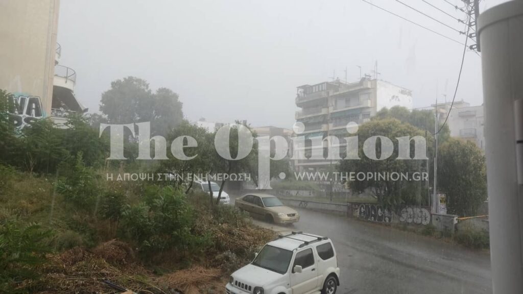 Η ισχυρή καταιγίδα ξεκίνησε λίγο πριν την μία το μεσημέρι από τα ανατολικά του νομού με ισχυρές κεραυνοπτώσεις, καταιγίδα ακόμη και χαλαζόπτωση.
