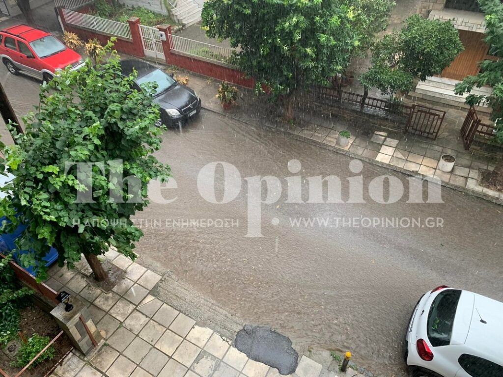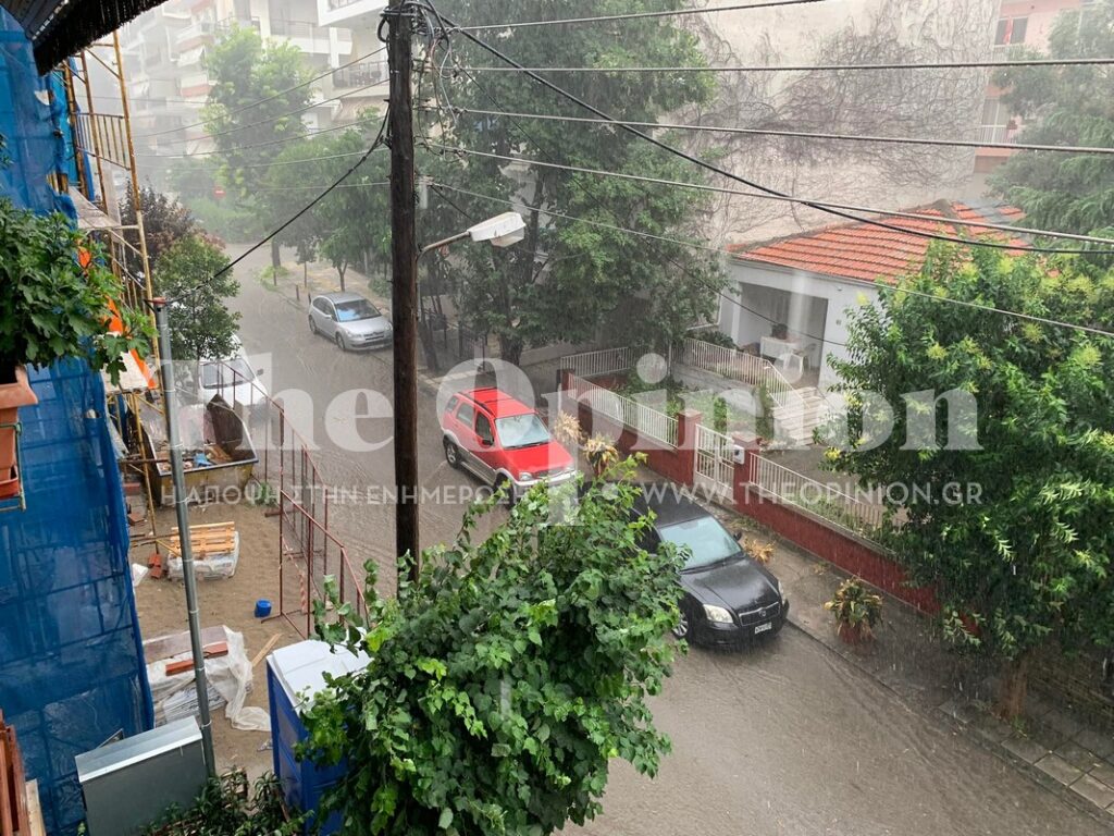 Η ισχυρή καταιγίδα ξεκίνησε λίγο πριν την μία το μεσημέρι από τα ανατολικά του νομού με ισχυρές κεραυνοπτώσεις, καταιγίδα ακόμη και χαλαζόπτωση.