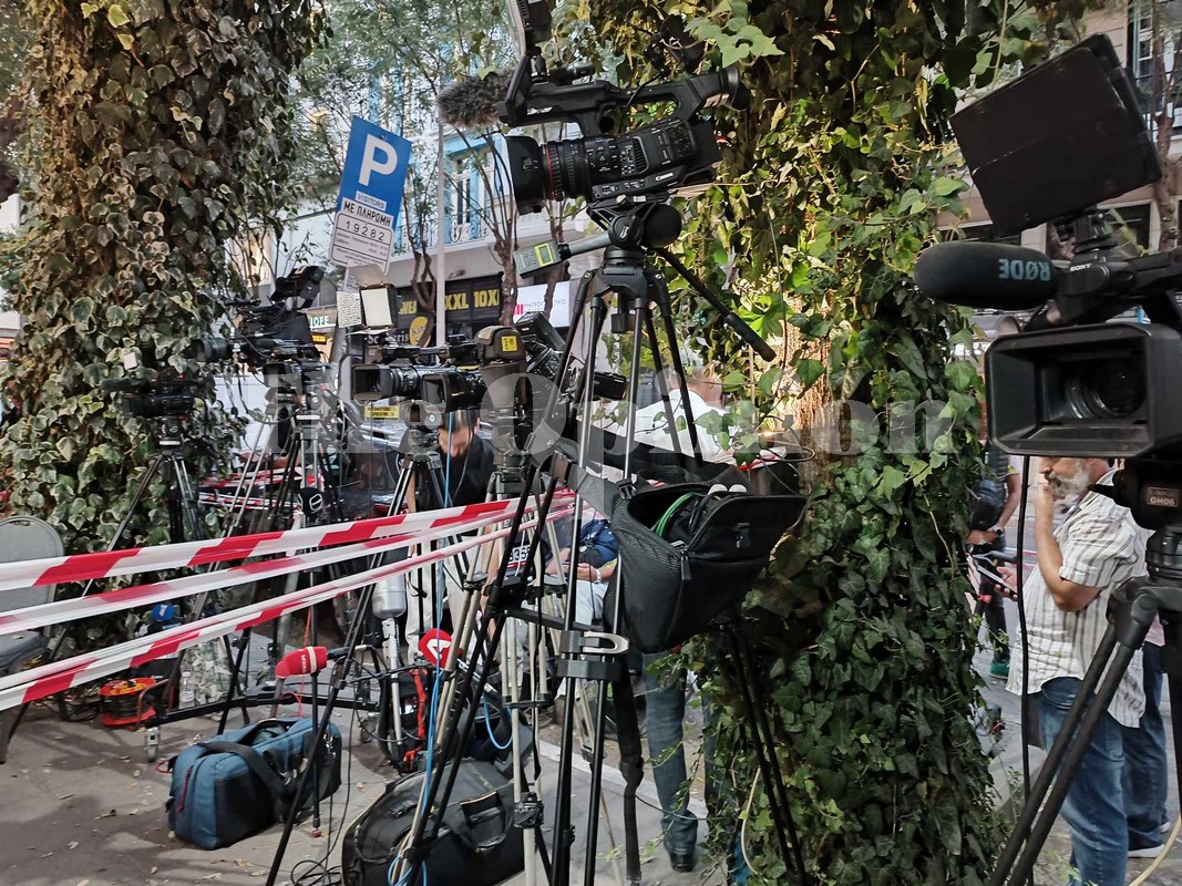 Από νωρίς οι στενοί του συνεργάτες και τα τηλεοπτικά συνεργεία είχαν κατακλύσει τον χώρο έξω από το εκλογικό κέντρο.