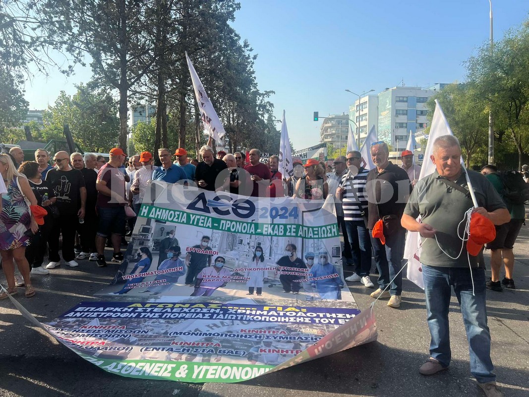 Το «Καραβάνι της Υγείας», όπως το έχει ονομάσει η ΠΟΕΔΗΝ, συγκεντρώθηκε στο νοσοκομείο Ιπποκράτειο της Θεσσαλονίκης και μέσω πορείας σε κεντρικούς δρόμους, θα καταλήξει στο ΥΜΑΘ.