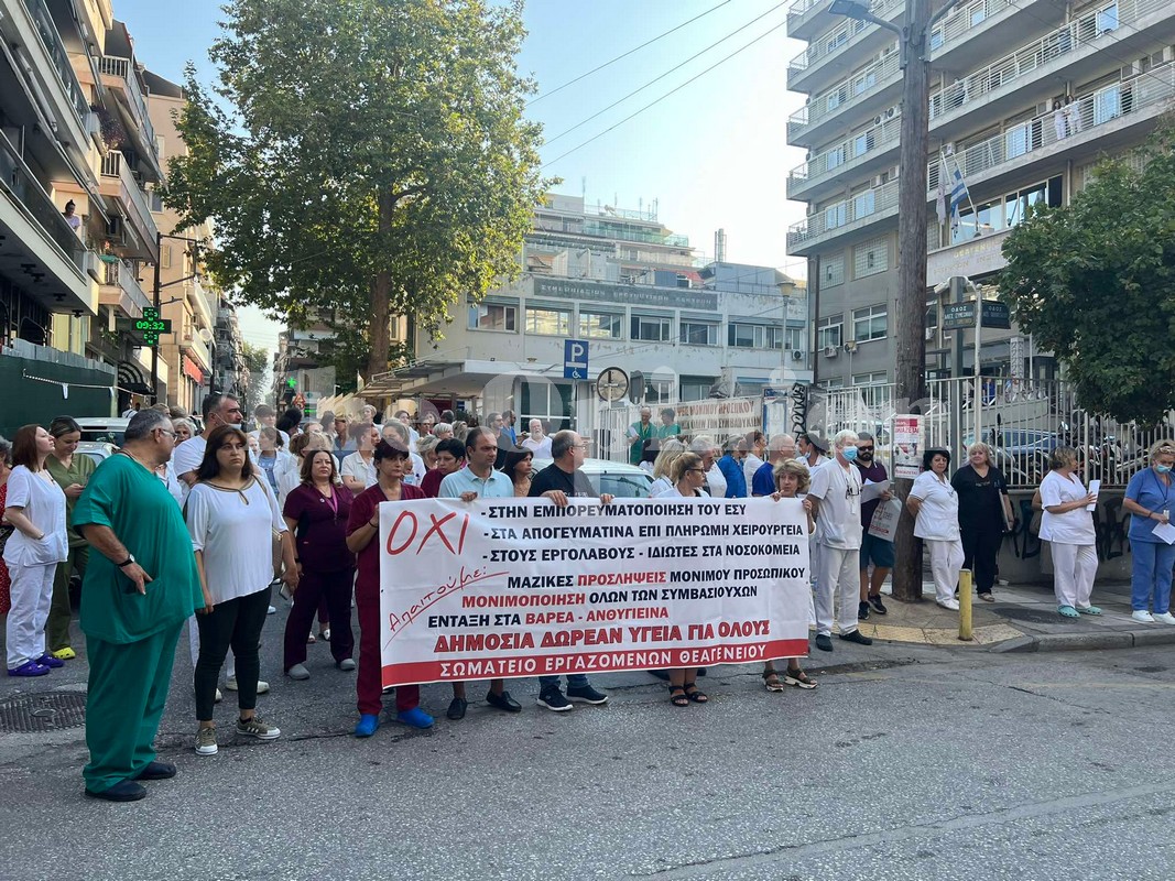 Το «Καραβάνι της Υγείας», όπως το έχει ονομάσει η ΠΟΕΔΗΝ, συγκεντρώθηκε στο νοσοκομείο Ιπποκράτειο της Θεσσαλονίκης και μέσω πορείας σε κεντρικούς δρόμους, θα καταλήξει στο ΥΜΑΘ.