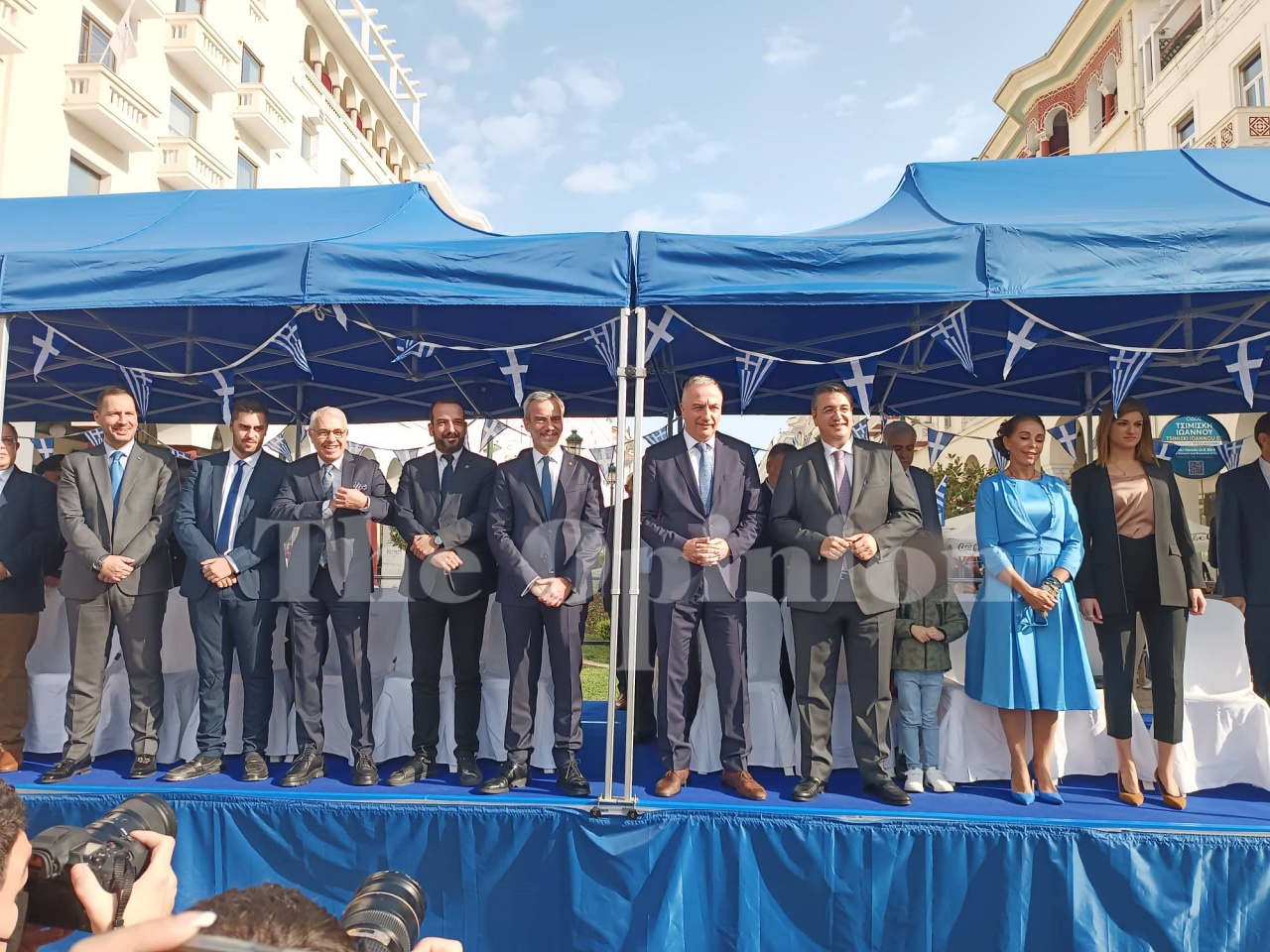 Στην εξέδρα των επισήμων ο υφυπουργός Εσωτερικών Σταύρος Καλαφάτης, ο Περιφερειάρχης Κεντρικής Μακεδονίας Απόστολος Τζιτζικώστας, ο δήμαρχος Θεσσαλονίκης Κωνσταντίνος Ζέρβας, η αντιπεριφερειάρχης Θεσσαλονίκης Βούλα Πατουλίδου, η βουλευτής του ΣΥΡΙΖΑ Κατερίνα Νοτοπούλου, ο γενικός γραμματέας ενημέρωσης και επικοινωνίας Δημήτρης Γαλαμάτης, ο βουλευτής της ΝΔ, Δημήτρης Κούβελας κ.α.