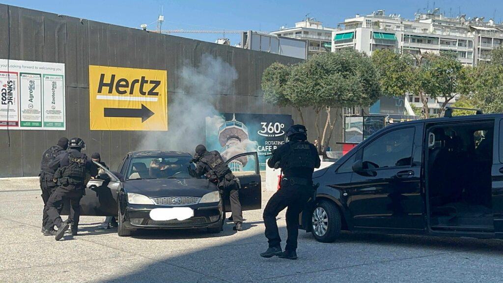 Υψωμένα όπλα, σπασμένα τζάμια και κραυγές αγωνίας από το εσωτερικό ενός αυτοκινήτου έστησαν το σκηνικό της κρίσης. Οι όμηροι στριμωγμένοι στα πίσω καθίσματα, ενώ έξω οι βαριά οπλισμένοι άνδρες της ΕΚΑΜ κινήθηκαν με χειρουργική ακρίβεια.