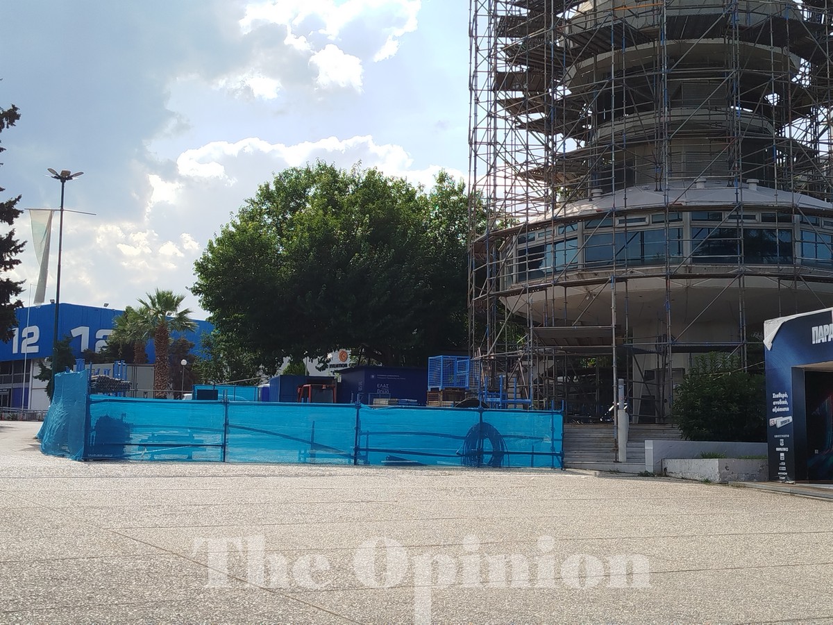 Αν κανείς περάσει από το εμβληματικό κτίριο που βρίσκεται εντός του χώρου της ΔΕΘ, θα αντικρίσει σκαλωσιές, τοποθετημένες περιμετρικά του κτιρίου και πολλούς εργάτες που δουλεύουν ανελλιπώς.