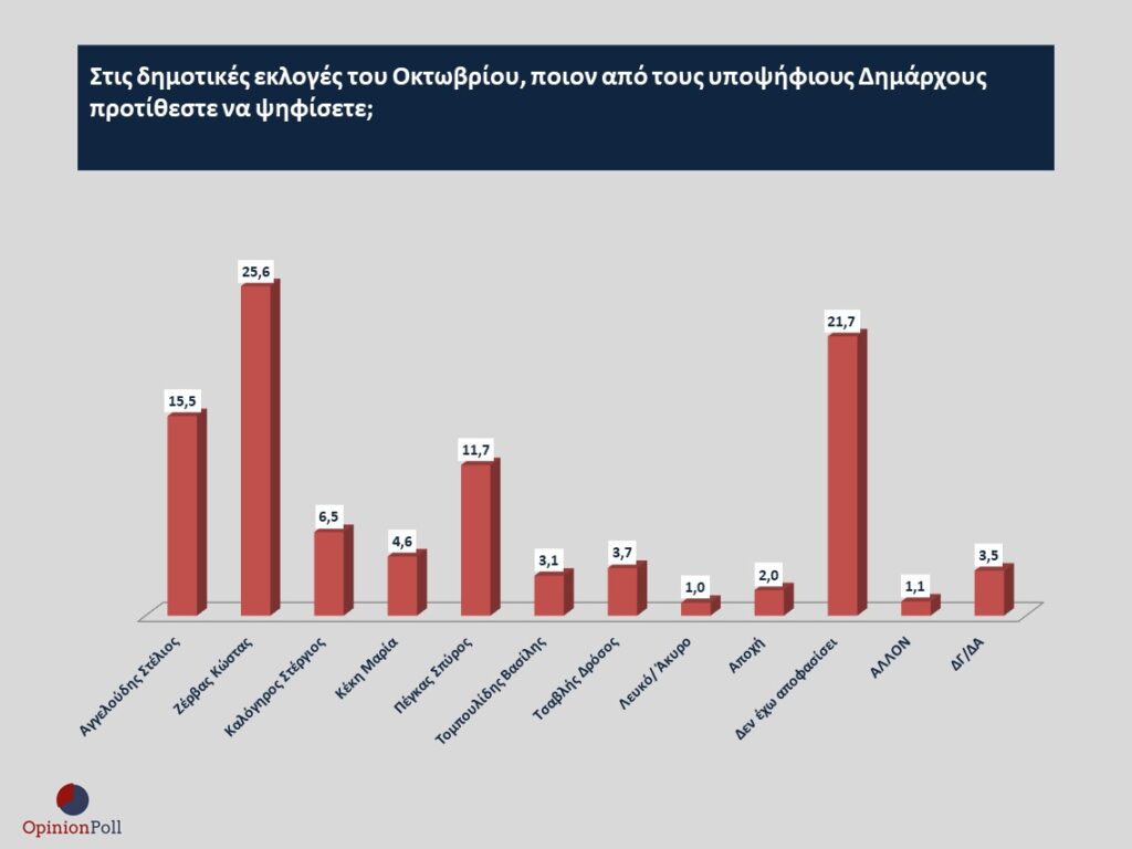 Σε μάχη Ζέρβα- Αγγελούδη εξελίσσεται η μάχη για τον Δήμο Θεσσαλονίκης σύμφωνα με τα αποτελέσματα έρευνας της OPINIONPOLL για το TheOpinion.gr.