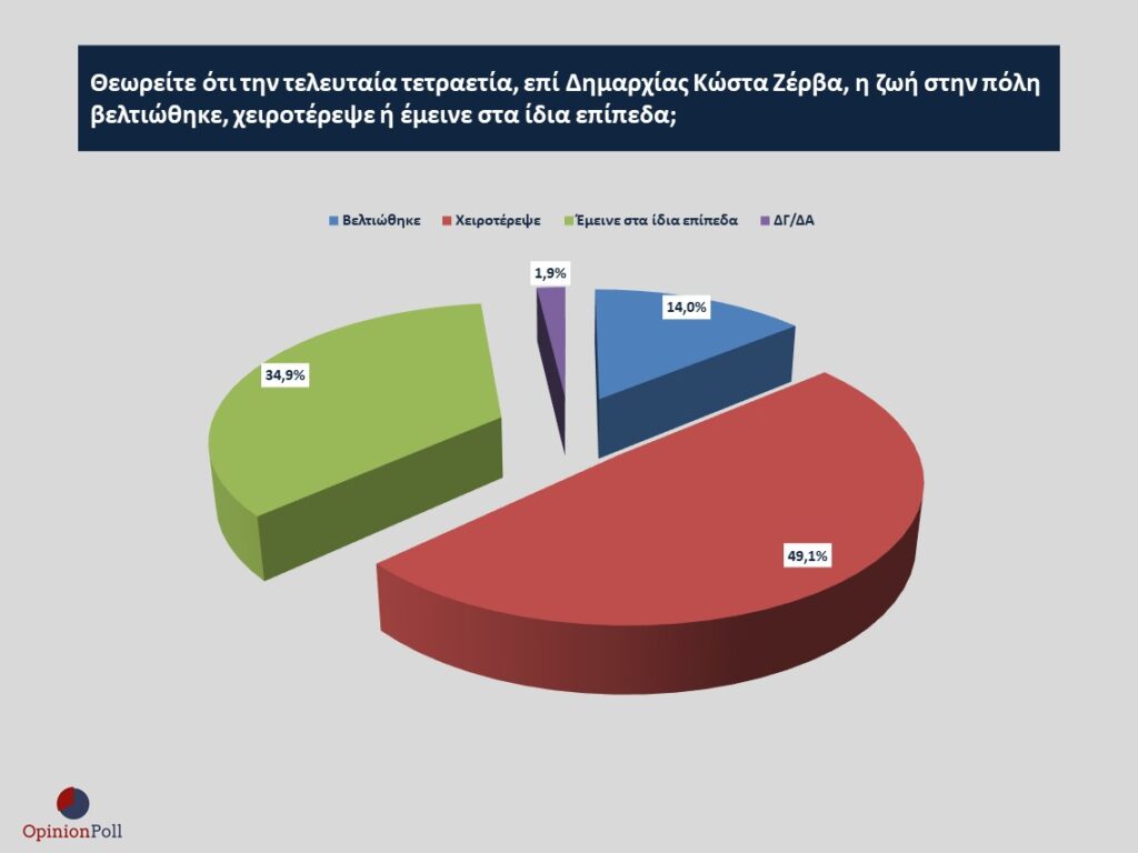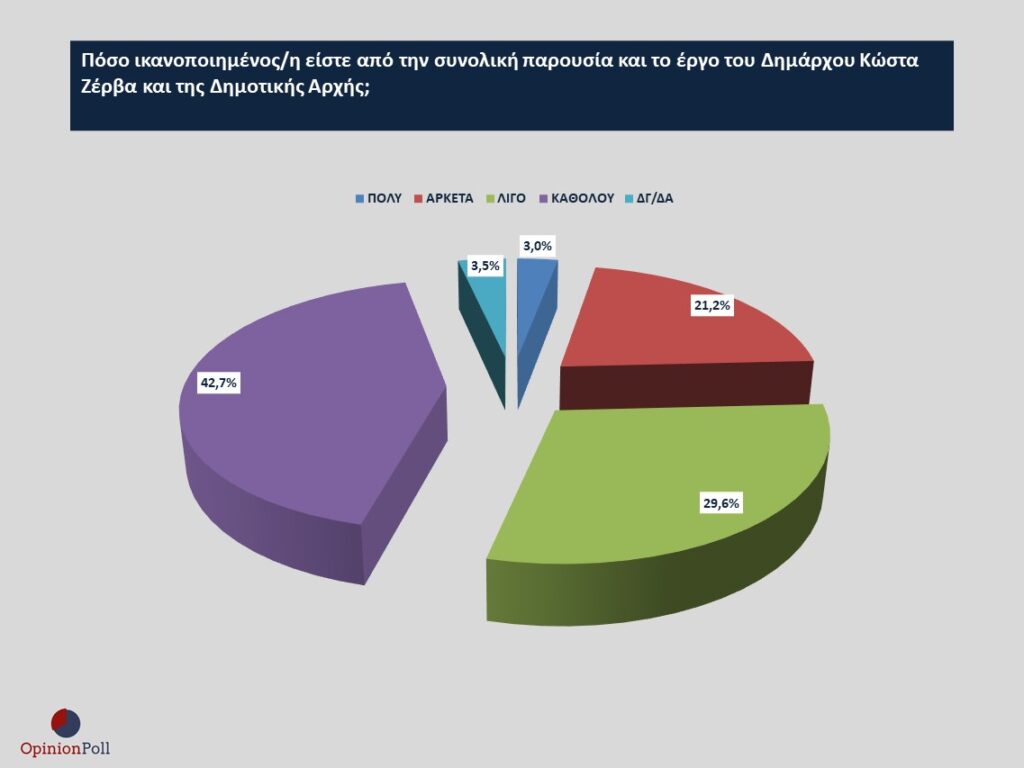 Από τα αποτελέσματα της έρευνας αναδεικνύεται ένα πολύ δύσκολο κλίμα για τον Κ. Ζέρβα για την περίοδο της δημαρχιακής θητείας του: