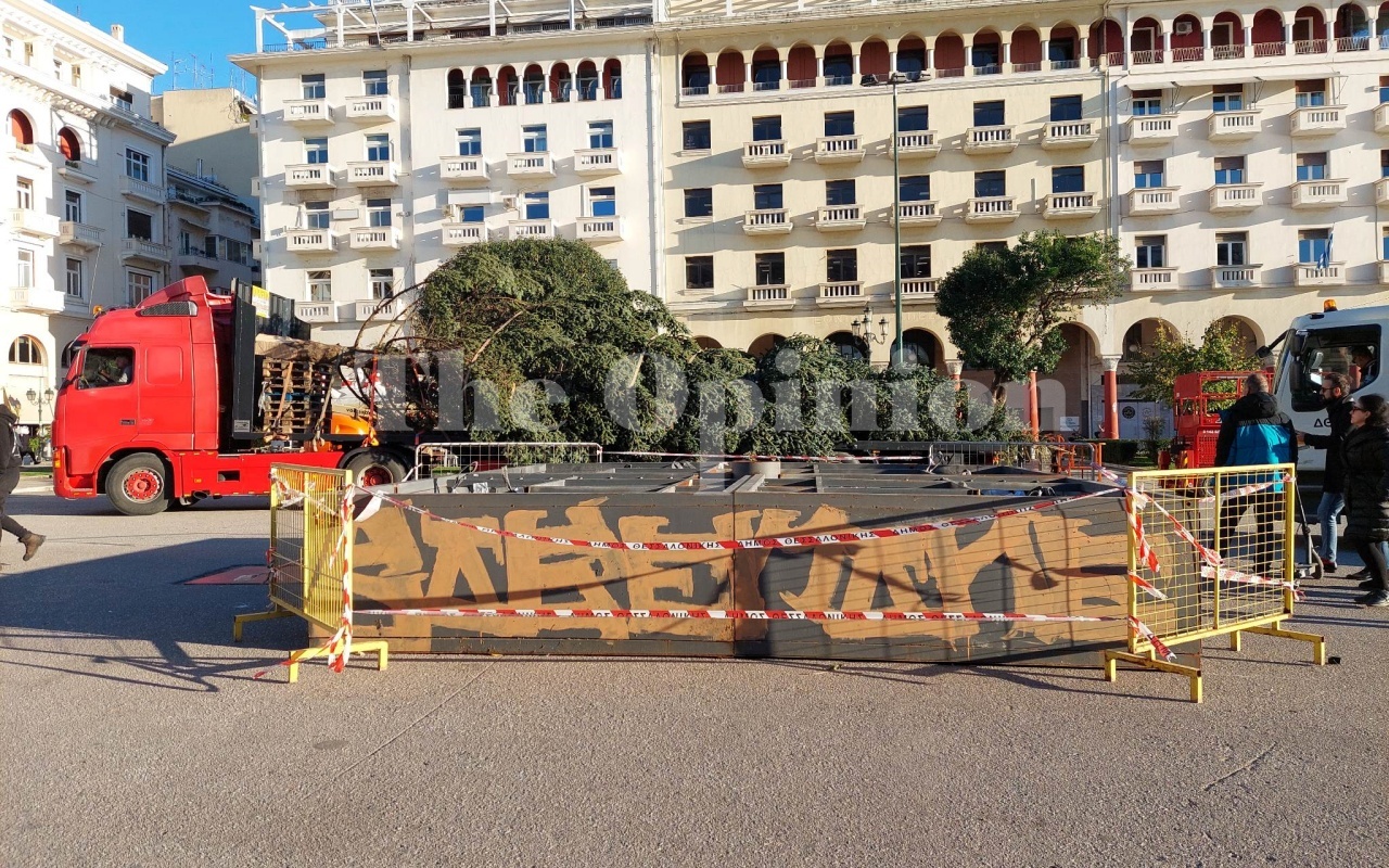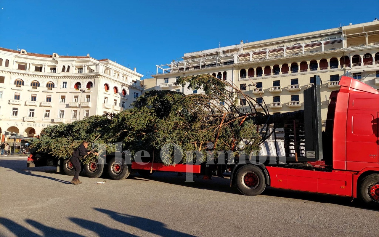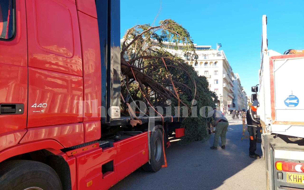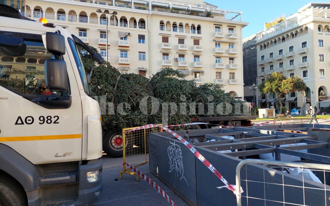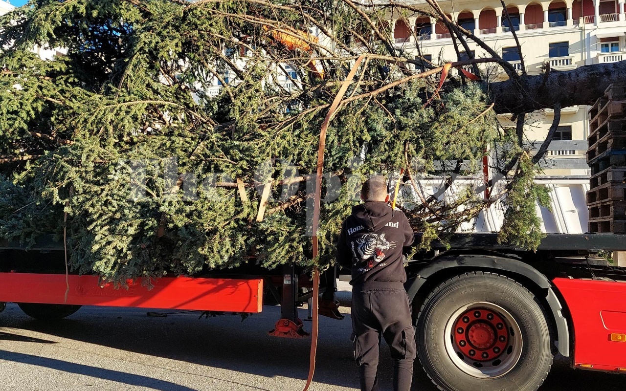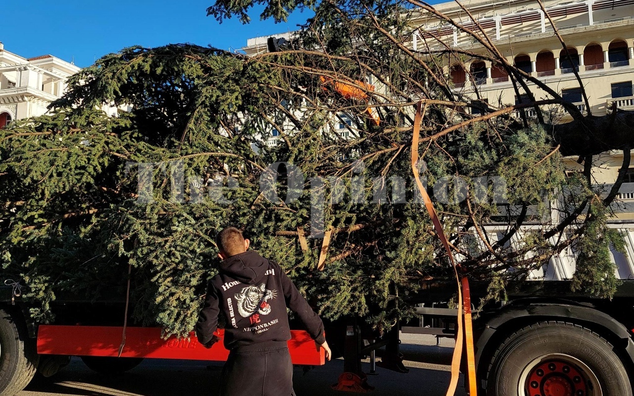 Στην πλατεία Αριστοτέλους έφτασε το χριστουγεννιάτικο δέντρο που θα κοσμήσει την πλατεία ορόσημο της πόλης μας κατά τη φετινή περίοδο των εορτών.