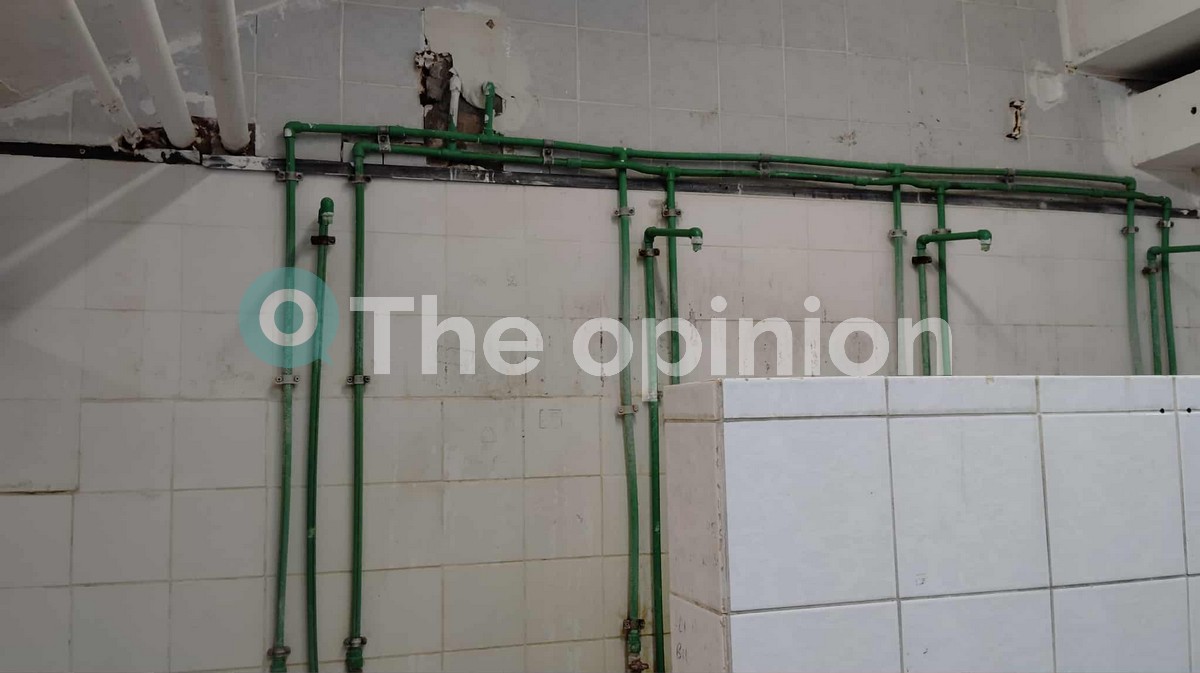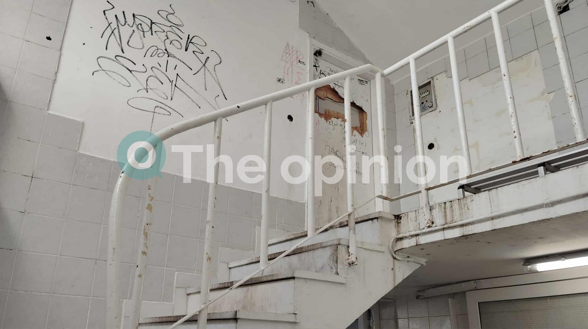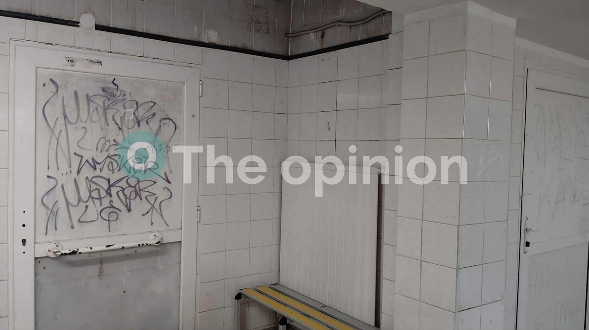 Σπασμένα πλακάκια, σωλήνες αντί για ντουζιέρες, αντικείμενα πεταμένα δεξιά κι αριστερά, συνθήματα, σκουριασμένα στοιχεία εξοπλισμού, εικόνες μιας άλλης εποχής σε ερμάρια και παγκάκια στα αποδυτήρια, εμφανής έλλειψη φροντίδας και επιμέλειας.