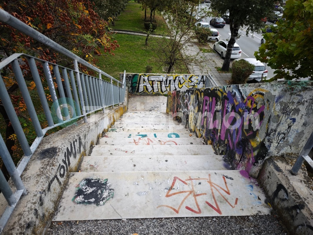 Εικόνες εγκατάλειψης στην πεζογέφυρα της Λεωφόρου Μεγάλου Αλεξάνδρου
