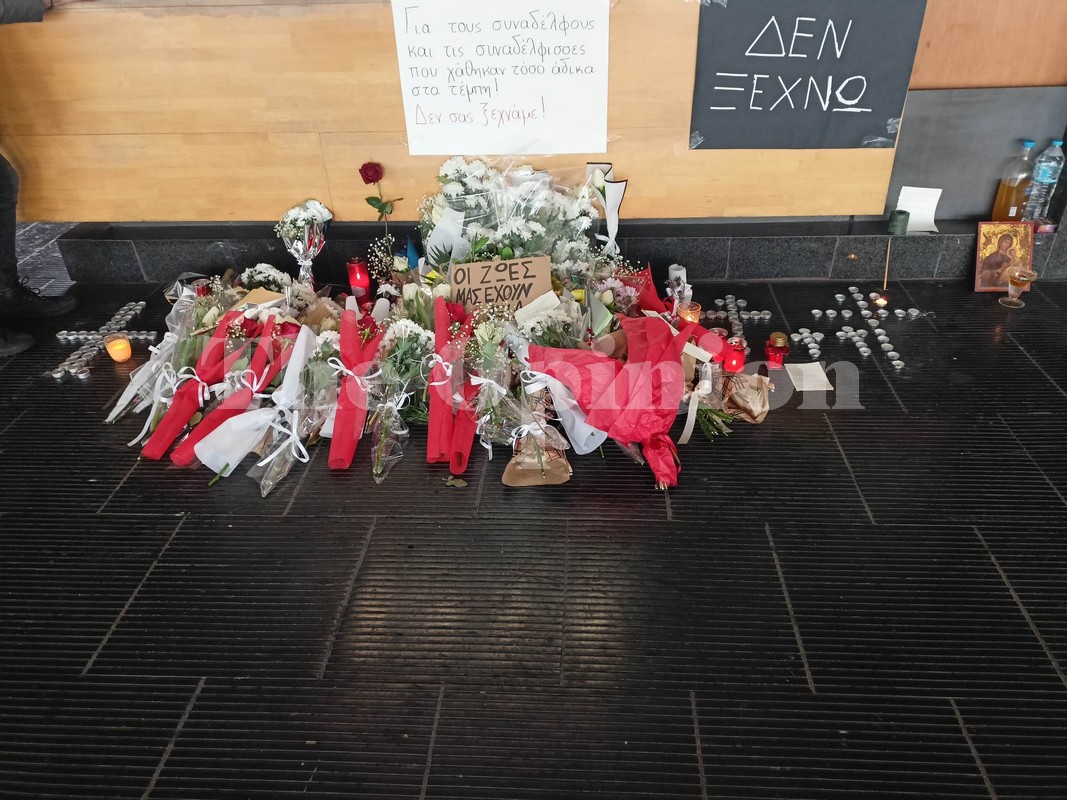Όπως έγινε ήδη γνωστό, έχουν ανασταλεί τα δρομολόγια της Hellenic Train, όμως άνθρωποι συρρέουν στον σταθμό για να αφήσουν ένα λουλούδι και κάποιο σημείωμα εις μνήμην όλων των αδικοχαμένων ψυχών.