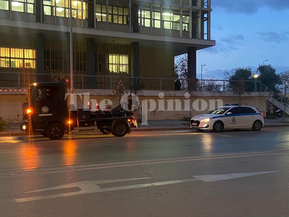 Προς το παρόν ο γερανός της τροχαίας απομακρύνει τα παρανόμως σταθμευμένα οχήματα.