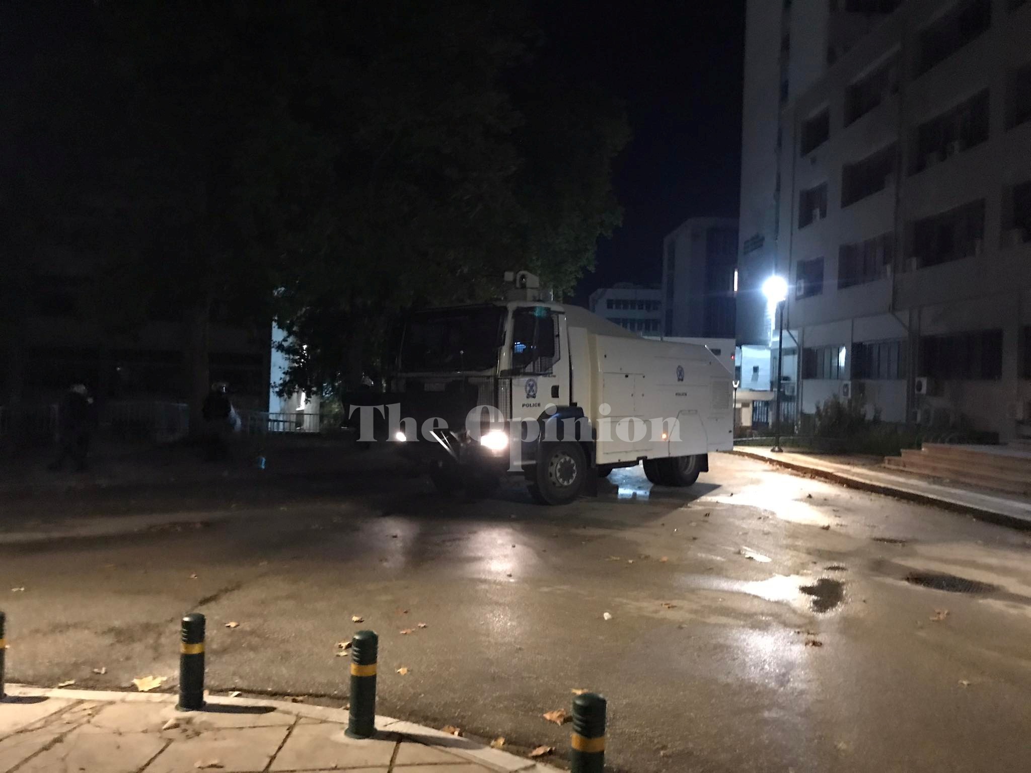 Λίγο μετά τις 21:30 η κατάσταση αποκλιμακώθηκε, με φθορές να παρατηρούνται σε ΙΧ που ήταν παρκαρισμένο κοντά στην Βιβλιοθήκη.