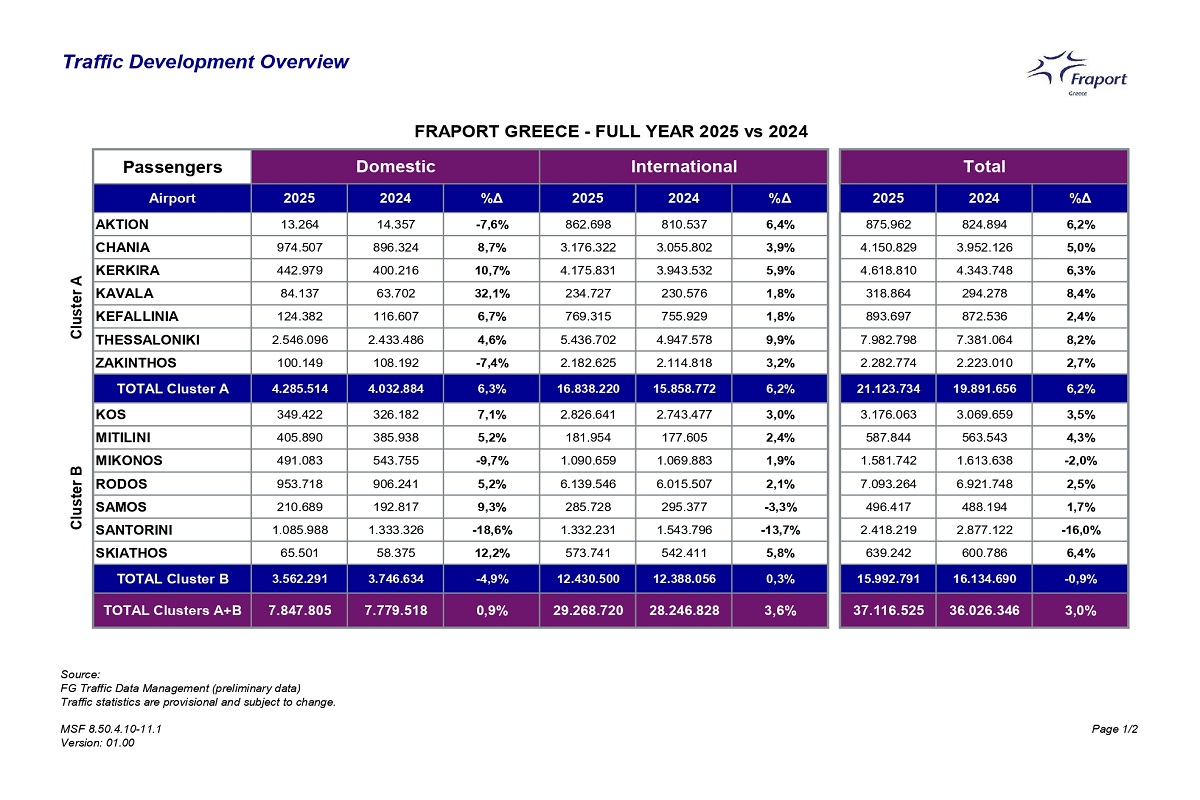 Πρόσφατα είχε παρουσιάσει τα στατιστικά στοιχεία του 2025 και η Fraport Greece, διαχειρίστρια εταιρία 14 περιφερειακών αεροδρομίων.