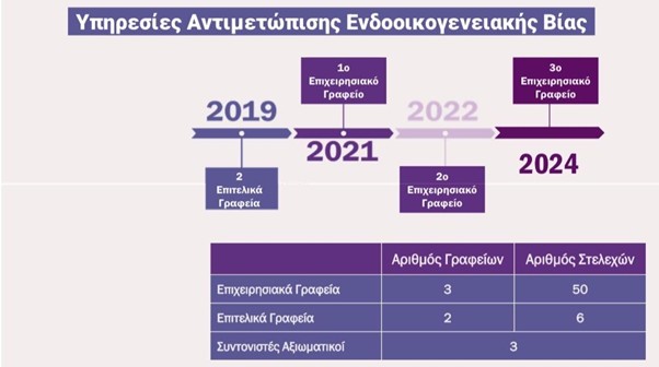Η λειτουργία των Γραφείων Αντιμετώπισης Ενδοοικογενειακής Βίας στη Θεσσαλονίκη ξεκίνησε με την ίδρυση ενός Επιτελικού Γραφείου, το οποίο αποτέλεσε τον πυρήνα γύρω από τον οποίο αναπτύχθηκαν οι υπόλοιπες δομές. Το 2024 είχαν διαμορφωθεί δύο Επιτελικά Γραφεία και δύο Επιχειρησιακά Γραφεία, όμως η αυξημένη ανάγκη για πιο οργανωμένη αντιμετώπιση των περιστατικών οδήγησε σε περαιτέρω επέκταση. Έτσι, το 2025 η διάρθρωση ενισχύθηκε με τη λειτουργία τριών Επιχειρησιακών Γραφείων, τα οποία αναλαμβάνουν πλέον το μεγαλύτερο μέρος της διαχείρισης των υποθέσεων. Παράλληλα, από το 2019 μέχρι σήμερα, 2.520 αστυνομικοί έχουν μετεκπαιδευτεί σε ζητήματα ενδοοικογενειακής βίας. Στην εκπαίδευση περιλαμβάνονται διοικητές αστυνομικών τμημάτων, αξιωματικοί υπηρεσίας, στελέχη της Άμεσης Δράσης και μέλη ειδικών επιχειρησιακών μονάδων όπως η ΟΠΚΕ και η ΔΙ.ΑΣ. Η συνεχής επιμόρφωση ενισχύει την ικανότητα των υπηρεσιών να ανταποκρίνονται αποτελεσματικά σε ευαίσθητες και συχνά ιδιαίτερα επικίνδυνες υποθέσεις.