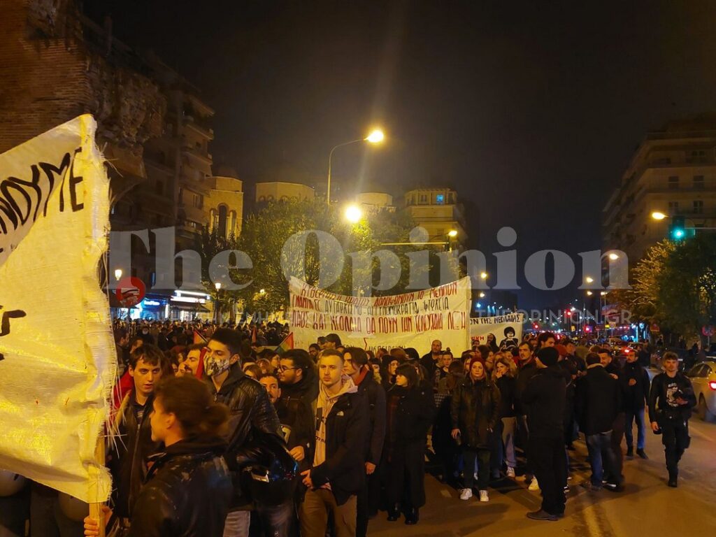 Λίγο νωρίτερα στην περιοχή της Καμάρας στο κέντρο της Θεσσαλονίκης υπήρξε κάλεσμα αντιεξουσιαστών για να διαδηλώσουν κατά της αστυνομικής βίας μετά τον πυροβολισμό στο κεφάλι του 16χρονου από αστυνομικό.