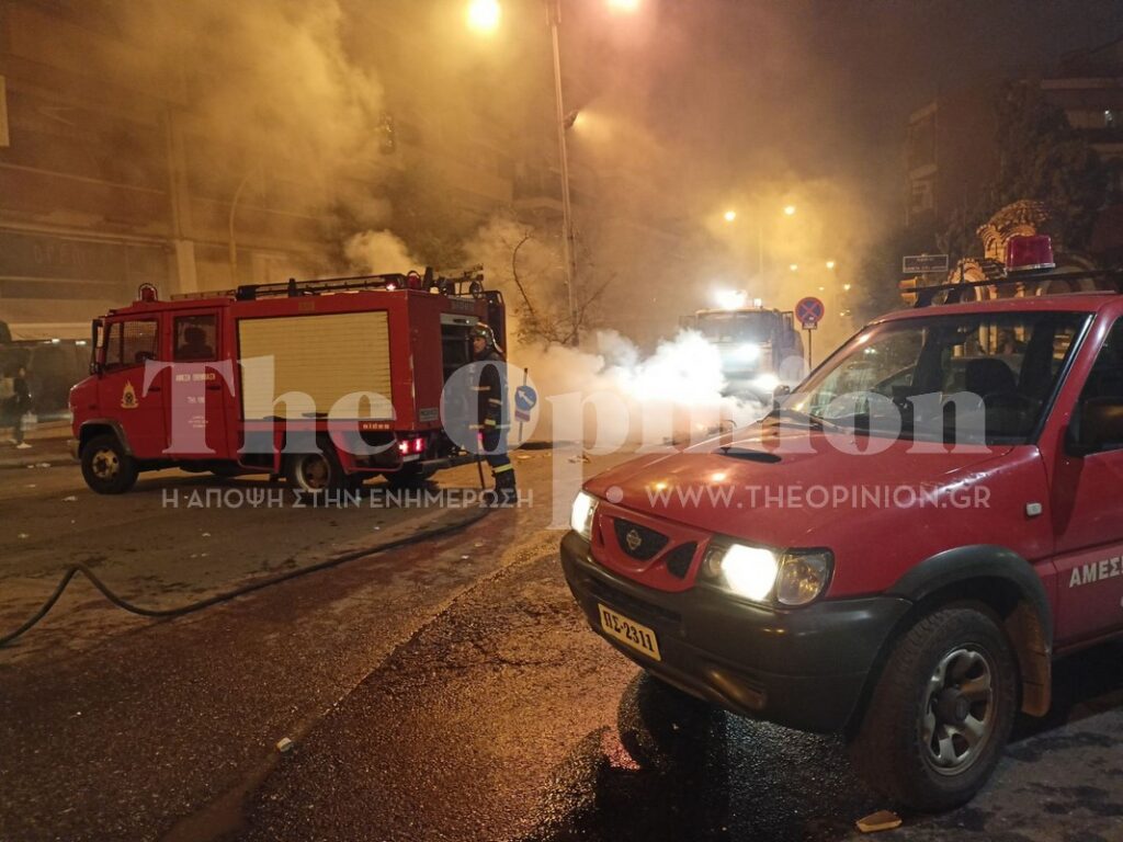 Φλεγόμενοι κάδοι παντού ενώ έκανε την εμφάνισή της και η Αυρα και ξεκίνησε τις ρίψεις νερού.