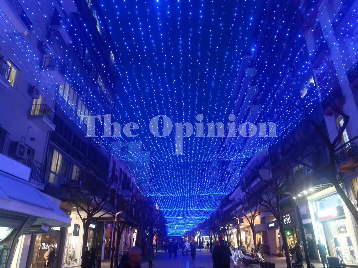 Σταδιακά τοποθετούνται αυτές τις μέρες και τα υπόλοιπα στοιχεία του στολισμού σε όλο τον άξονα, από το «πέταλο» ως και την Μητροπόλεως, όπου και κλασικά θα είναι το εντυπωσιακότερο μέρος.