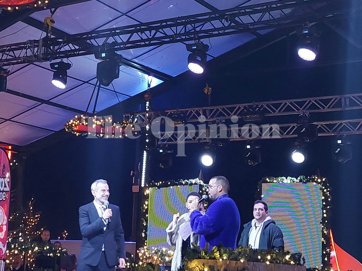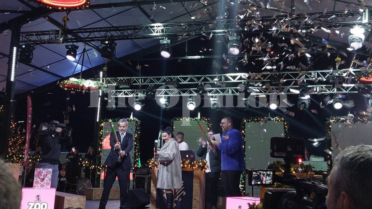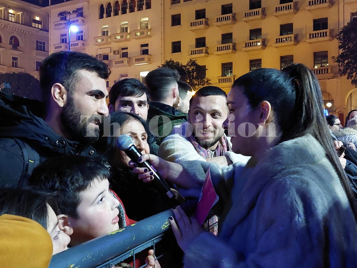 Η Μαρία Αμανατίδου και ο Ευθύμης Κάλφας, ραδιοφωνικοί παραγωγοί, κράτησαν συντροφιά στο κοινό, την τελευταία μισή ώρα πριν την αλλαγή του έτους, με μουσική και χορό. Οι παρουσιαστές μίλησαν για τις γιορτινές συνήθειες και τους τύπους ανθρώπων που βλέπουμε στα εορταστικά τραπέζια, ενώ παράλληλα αναζήτησαν κόσμο στο κοινό από άλλες χώρες, που επέλεξε να περάσει τις γιορτές του στην γιορτινή Θεσσαλονίκη.
