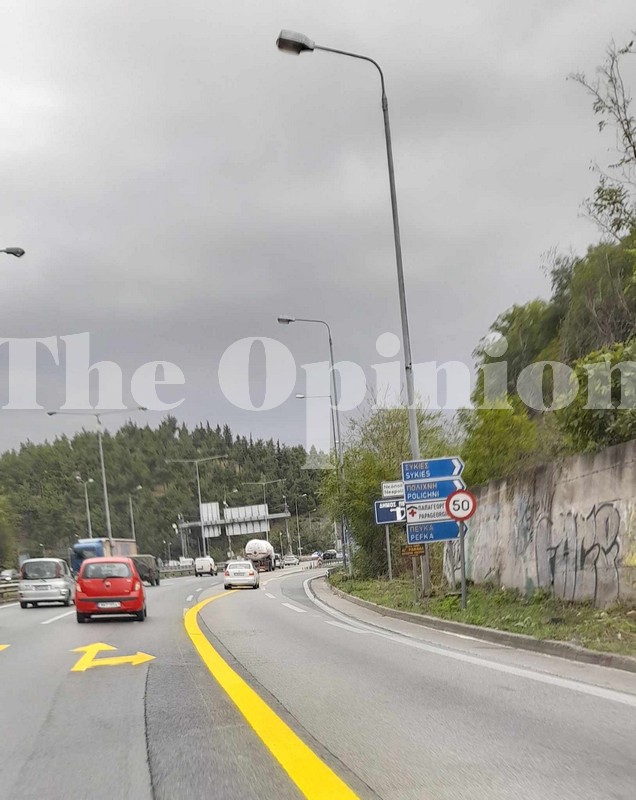 Πριν από λίγη ώρα, έκλεισε η δεξιά λωρίδα λίγο πιο κάτω όπως είχε ενημερώσει από χθες η Τροχαία Θεσσαλονίκης τοποθετώντας και τις πινακίδες με το νέο όριο ταχύτητας, τα 60 χλμ/ώρα (από 90).