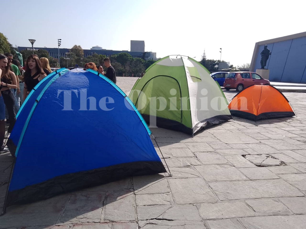 Οι διαμαρτυρόμενοι έστησαν συμβολικά αντίσκηνα έξω από το κτίριο διοίκησης θέλοντας να διαμαρτυρηθούν για το υψηλό κόστος διαβίωσης.