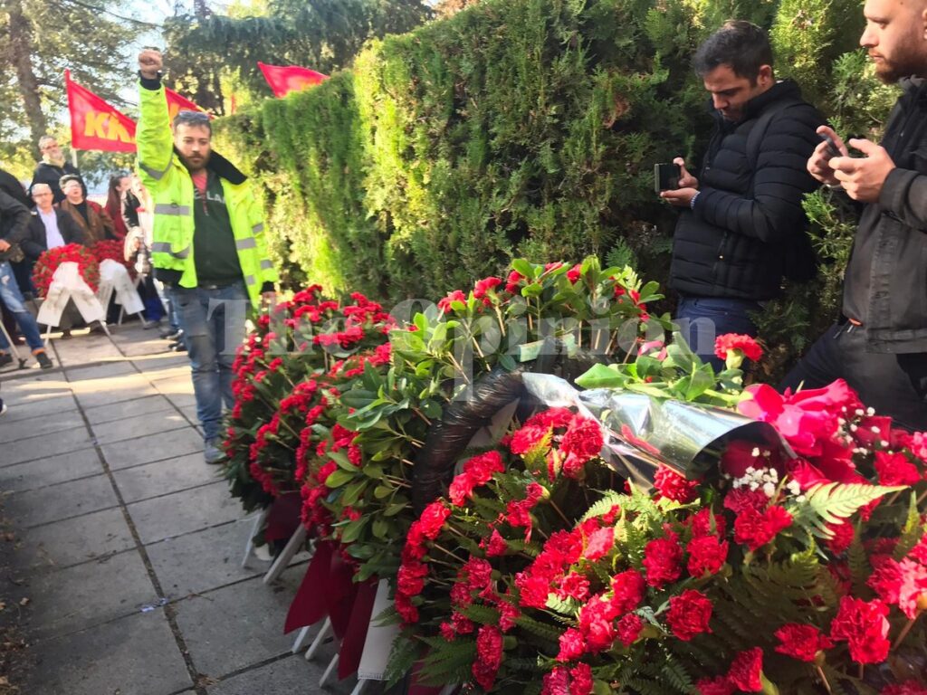 Για μια ακόμα χρονιά τα στελέχη του ΚΚΕ και του ΠΑΜΕ έδωσαν το δικό τους χρώμα στην τιμητική κατάθεση στεφάνων.