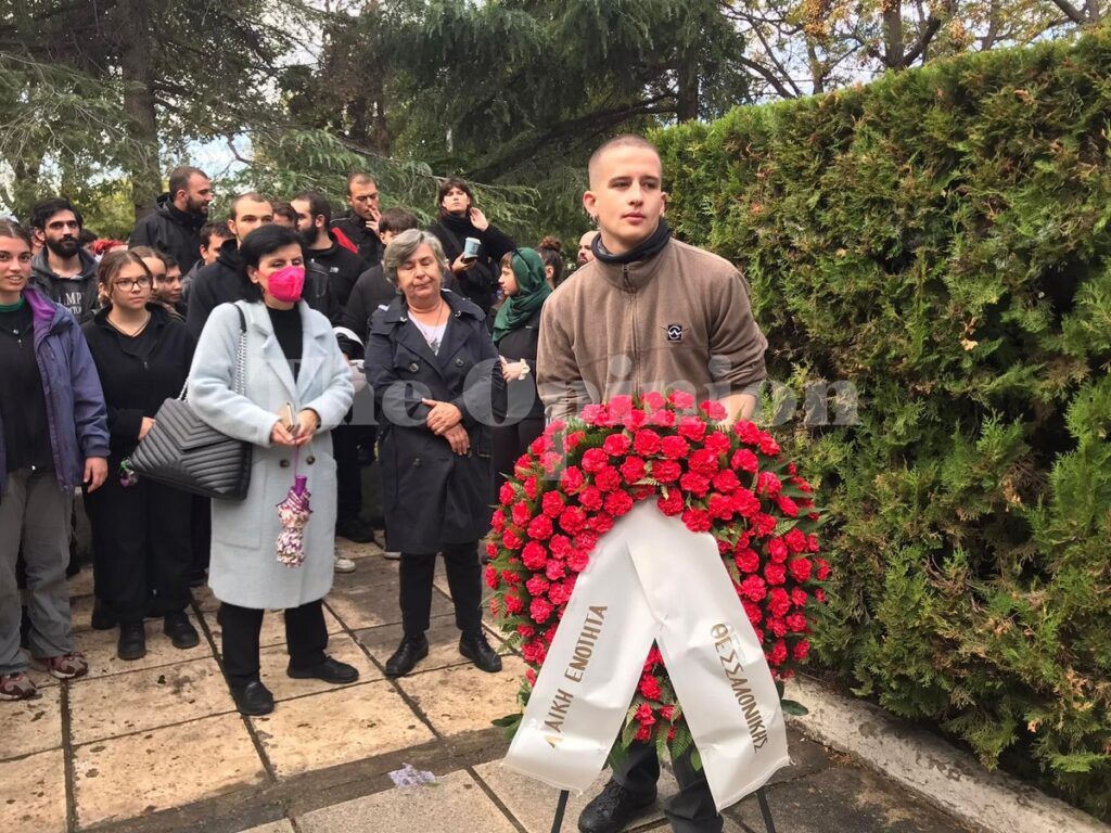 Φόρο τιμής και από την Λαϊκή Ενότητα με επικεφαλής τις Δέσποινα Χαραλαμπίδου και Χριστίνα Σουλτανίδου. Το στεφάνι της ΛΑΕ κατέθεσε ο Γιάννης Ντουσάκης, ο φοιτητής που είχε τραυματιστεί σε επεισόδια μπροστά από την κοσμητεία της ΣΘΕ από χειροβομβίδα κρότου λάμψης που καταγγέλθηκε ότι ρίχτηκε σε ευθεία βολή από τα ΜΑΤ.