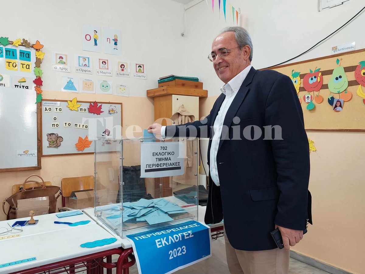 Ο ένας εκ των εννέα υποψηφίων για την Περιφέρεια, με τον συνδυασμό «Αλλαγή στην Περιφέρεια Κεντρικής Μακεδονίας», κατέφθασε στο εκλογικό τμήμα 702 επί της οδού Δελφών λίγο μετά τις 10:00 το πρωί.