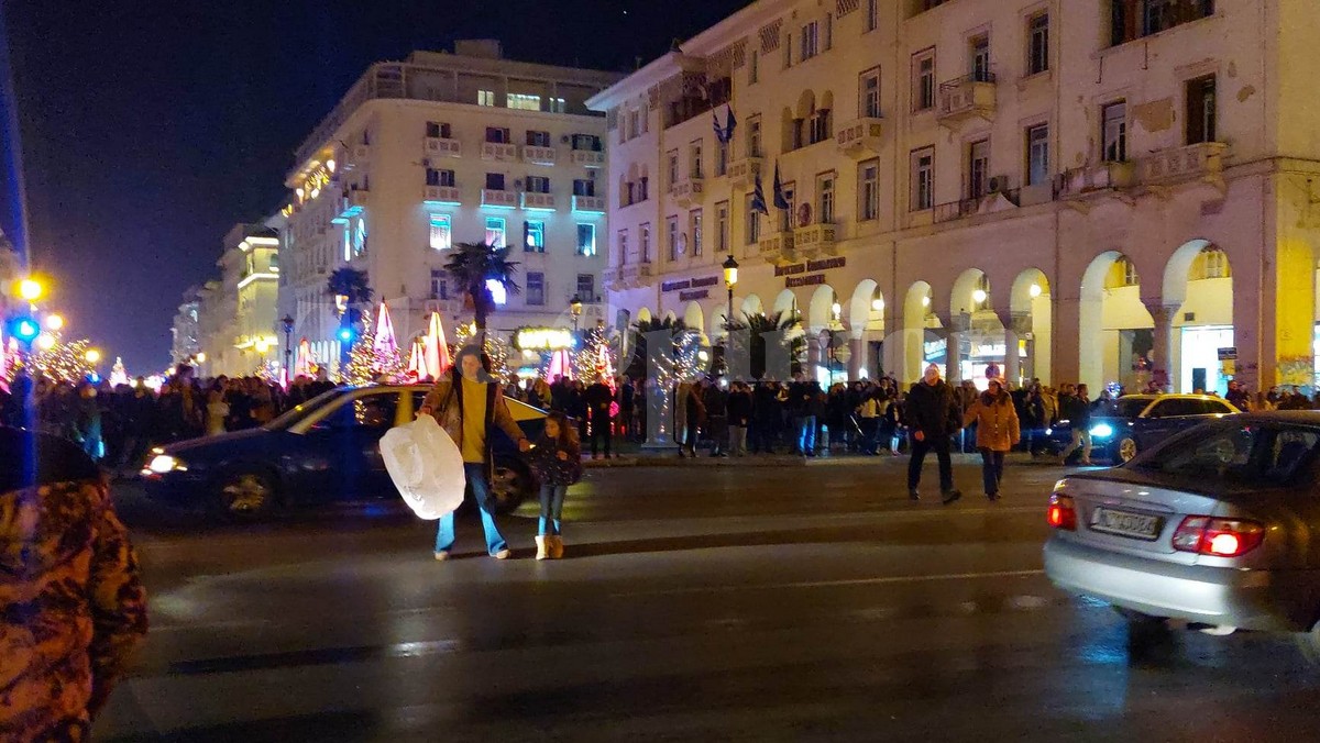 Τα εορταστικά φαναράκια ξεκίνησαν να ανάβουν λίγο μετά τις 18:00, με τον κόσμο να κάνει μια ευχή για το νέο έτος.