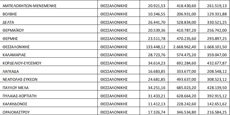 Τα ποσά για κάθε δήμο της Θεσσαλονίκης