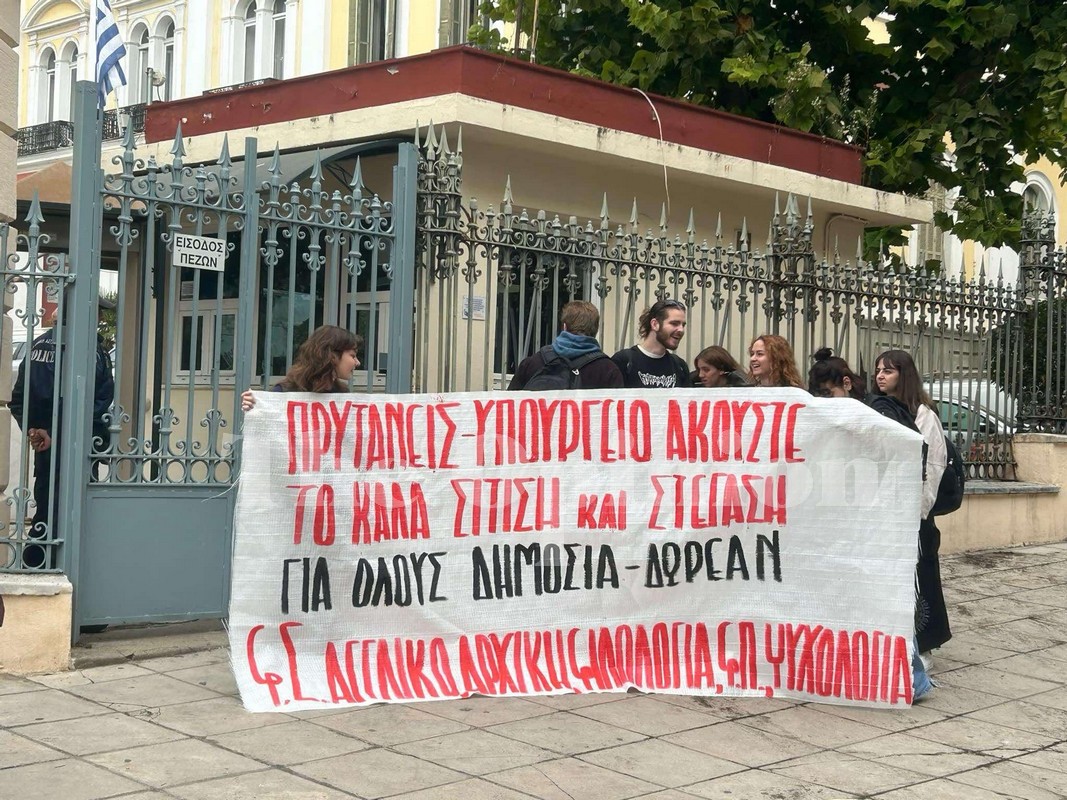 Συγκέντρωση διαμαρτυρίας πραγματοποιήσαν το μεσημέρι της Παρασκευής έξω από το Υπουργείο Μακεδονίας Θράκης φοιτητικοί σύλλογοι της Θεσσαλονίκης.