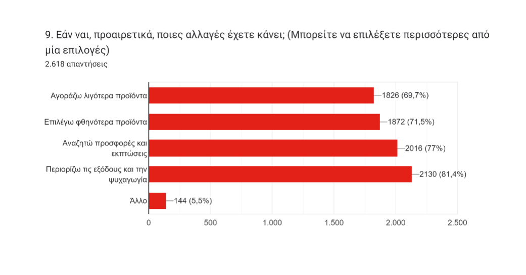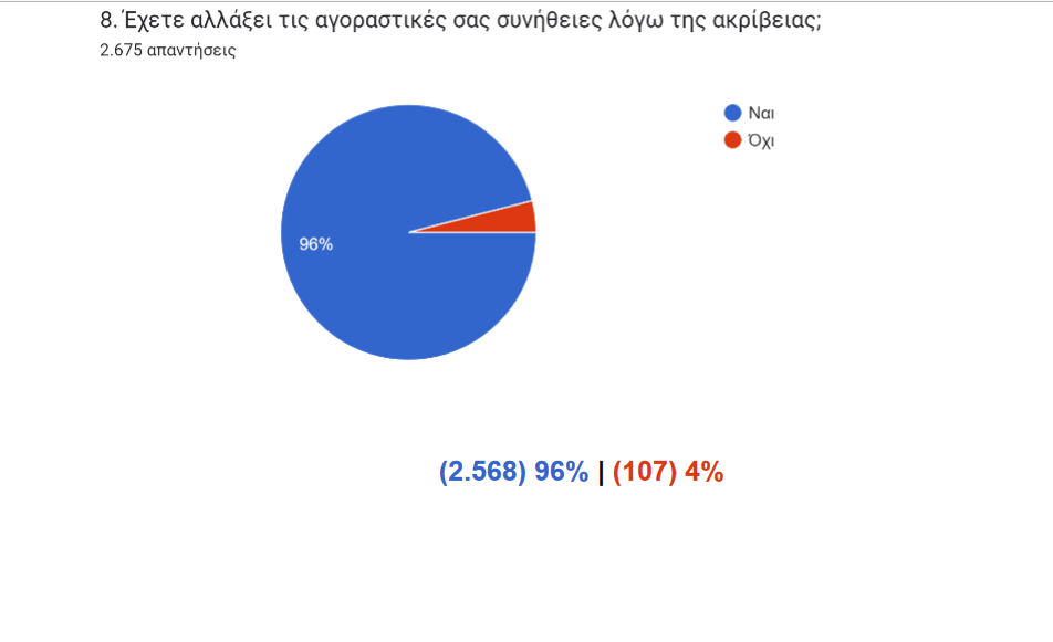 Ειδικότερα, το 96% των συμμετεχόντων στην έρευνα άλλαξε λόγω της ακρίβειας τις αγοραστικές του συνήθειες.