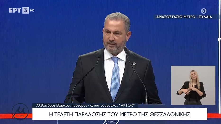 «Η Θεσσαλονίκη απέκτησε μετρό που άλλες πόλεις στον κόσμο θα ζήλευαν…», είπε μεταξύ άλλων στην ομιλία του στα εγκαίνια του μετρό Θεσσαλονίκης, ο Αλέξανδρος Εξάρχου, πρόεδρος και διευθύνων σύμβουλος του ομίλου ΑΚΤΩΡ.