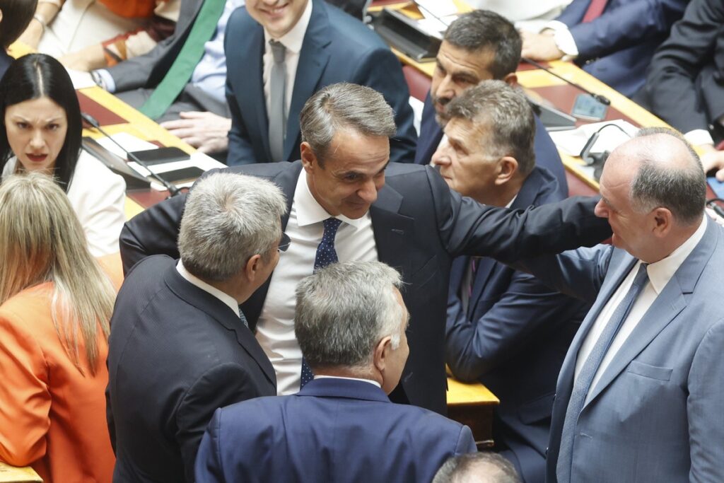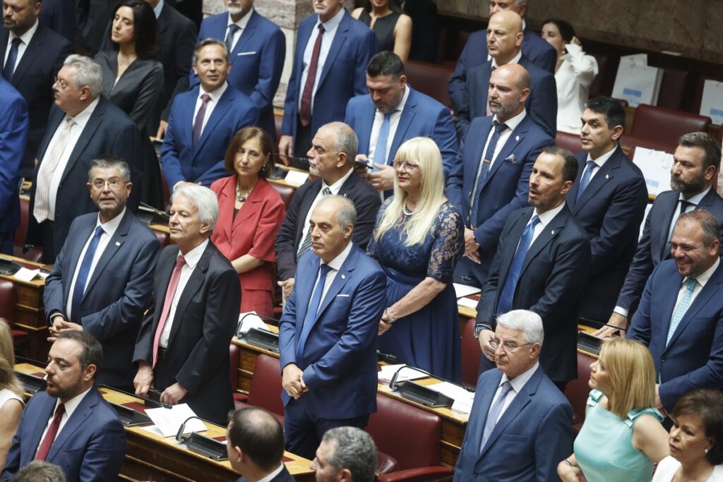(ΜΙΧΑΛΗΣ ΚΑΡΑΓΙΑΝΝΗΣ/EUROKINISSI)Ορκωμοσία της νέας Βουλής που προέκυψε από τις εθνικές εκλογές της 25 Ιουνίου, παρουσία της Προέδρου της Δημοκρατίας Κατερίνας Σακελλαροπούλου και του Πρωθυπουργού Κυριάκου Μητσοτάκη, Δευτέρα 3 Ιουλίου 2023.