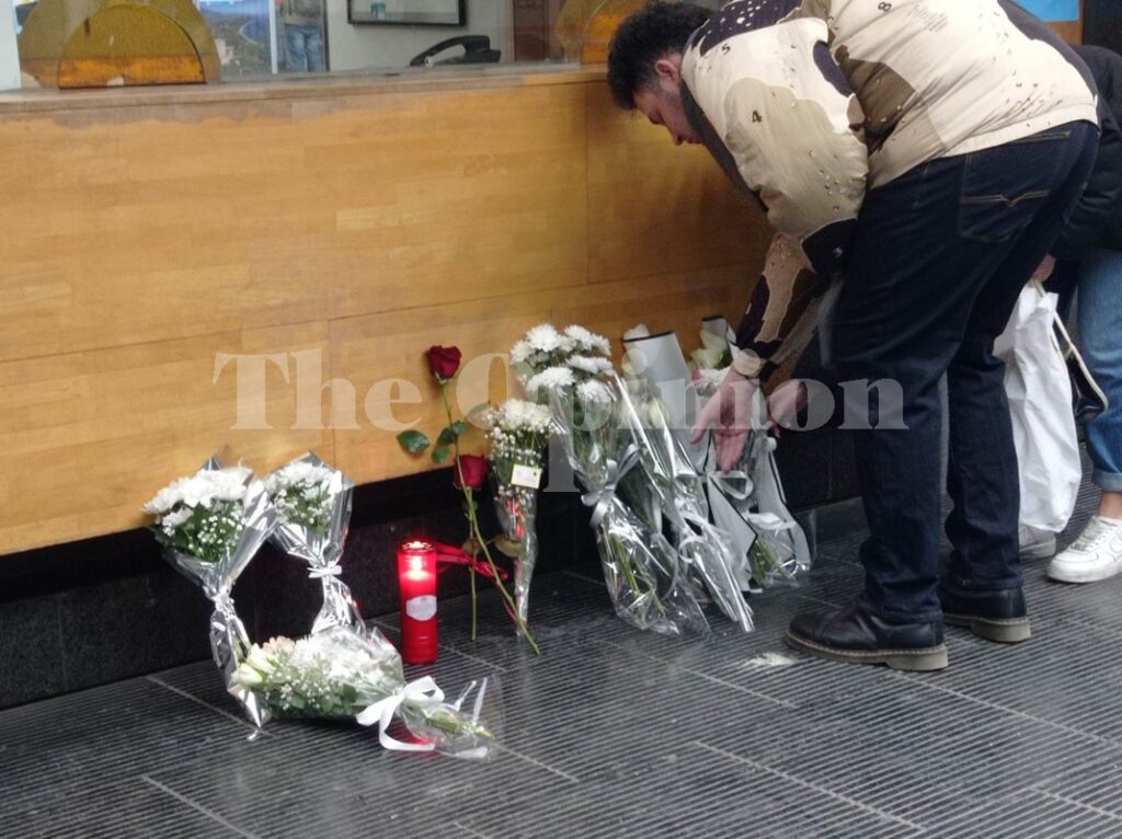 Λουλούδια καταθέτουν στο Σιδηροδρομικό Σταθμό της Θεσσαλονίκης, για τα θύματα του δυστυχήματος στα Τέμπη.