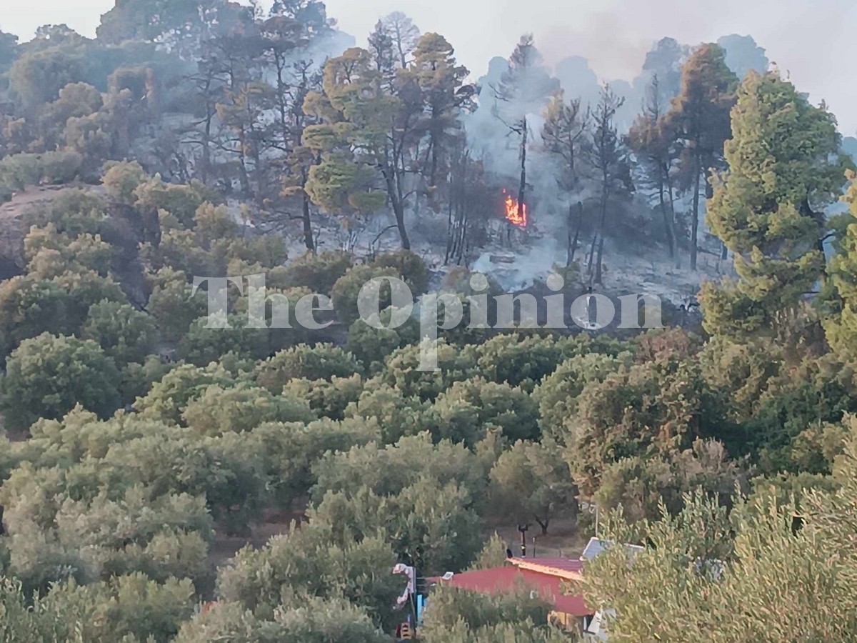 Σύμφωνα με πληροφορίες του TheOpinion, καίνε διάσπαρτες εστίες μέσα στην περίμετρο της φωτιάς.