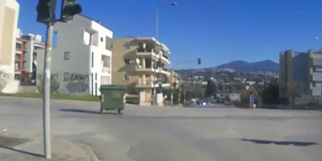 Ισχυροί άνεμοι στη Θεσσαλονίκη παρασύρουν κάδο απορριμμάτων (VIDEO)