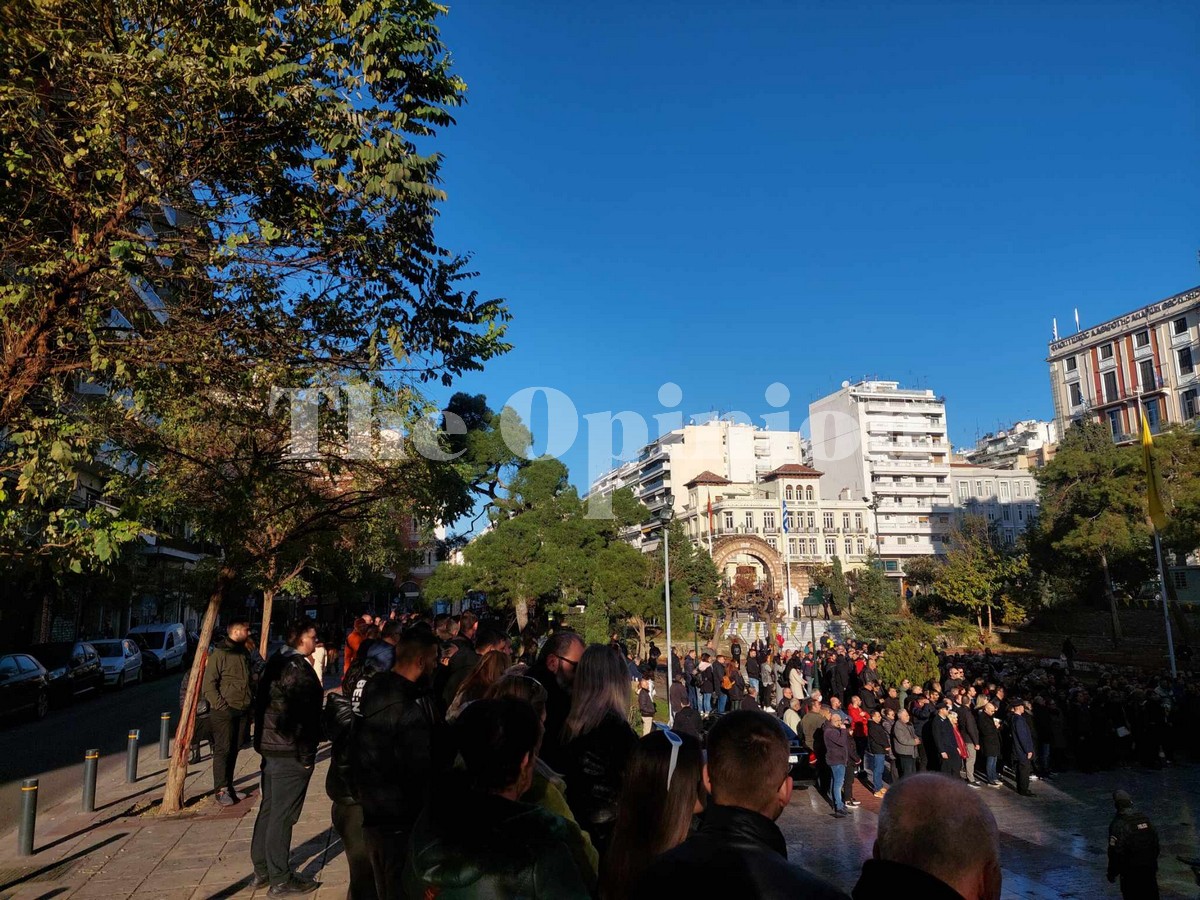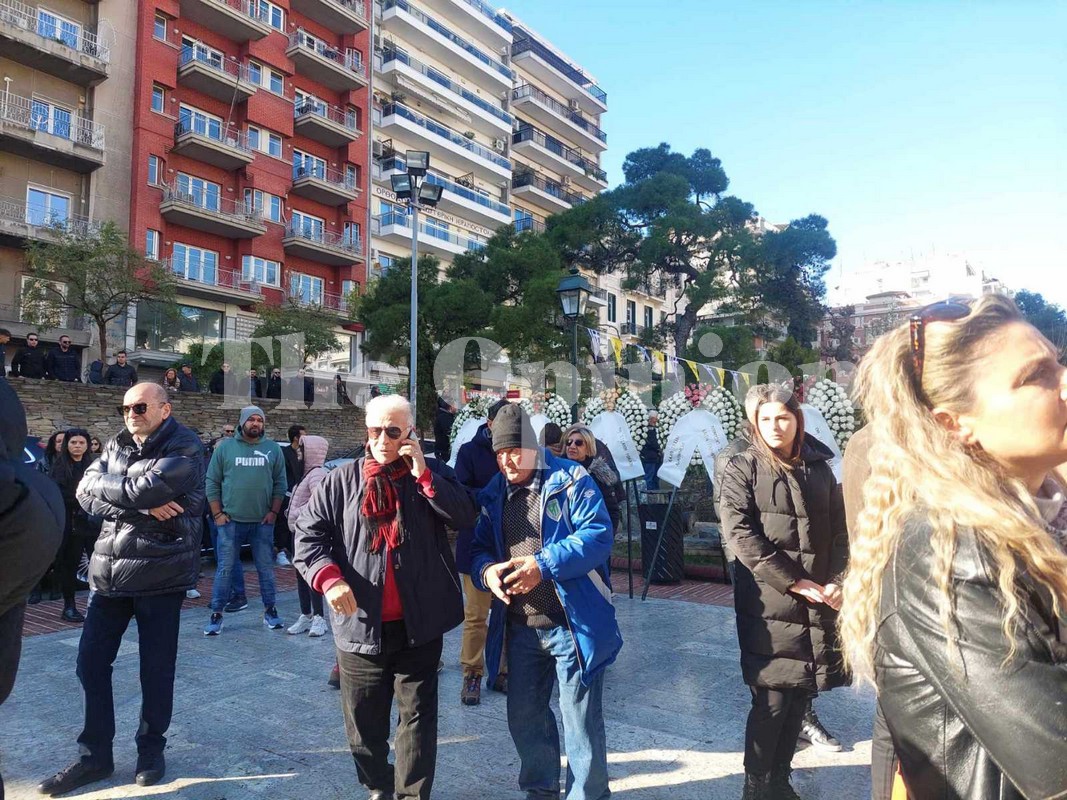 Χιλιάδες κόσμου βρέθηκαν στο κέντρο της Θεσσαλονίκης, είτε περιμετρικά της εκκλησίας, είτε περιμένοντας υπομονετικά στην μεγάλη ουρά, προκειμένου να πουν το τελευταίο «αντίο» στον σπουδαίο καλλιτέχνη.
