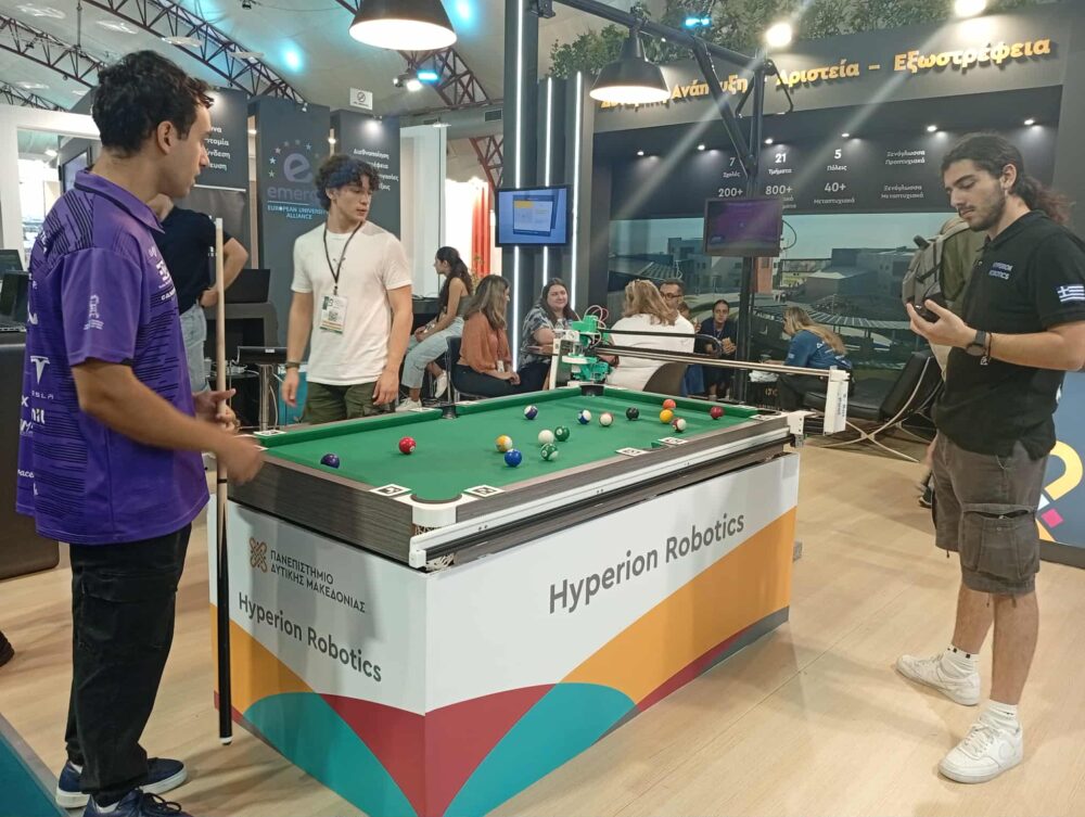 «Το έργο αφορά ένα ρομπότ που παίζει μπιλιάρδο, με την υποστήριξη της τεχνητής νοημοσύνης. Το σύστημα διαθέτει μια κάμερα που τραβάει φωτογραφίες του τραπεζιού και των μπάλων. Κάθε μπάλα έχει ειδικά σημάδια, σαν QR code, ώστε τα μοντέλα μηχανικής μάθησης να εντοπίζουν με ακρίβεια τη θέση τους. Με αυτόν τον τρόπο, το ρομπότ υπολογίζει την καλύτερη κίνηση για κάθε βολή και παίζει το παιχνίδι με εντυπωσιακή ακρίβεια», εξηγεί στο TheOpinion o Δημήτρης Μυλωνάς, φοιτητής πρώτου έτους στο τμήμα Ηλεκτρολόγων Μηχανικών στο Πανεπιστήμιο Δυτικής Μακεδονίας.