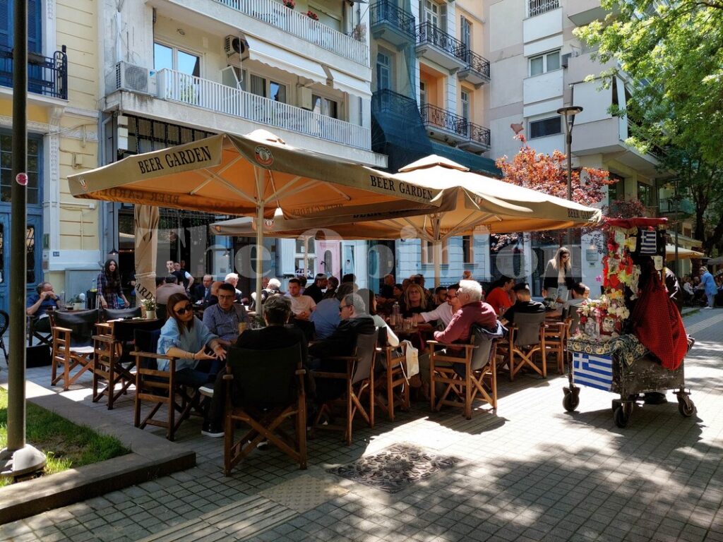 Με σύμμαχο τον καλό καιρό, οι Θεσσαλονικείς ξεχύθηκαν στο κέντρο της πόλης για βόλτα, καφέ και φαγητό.