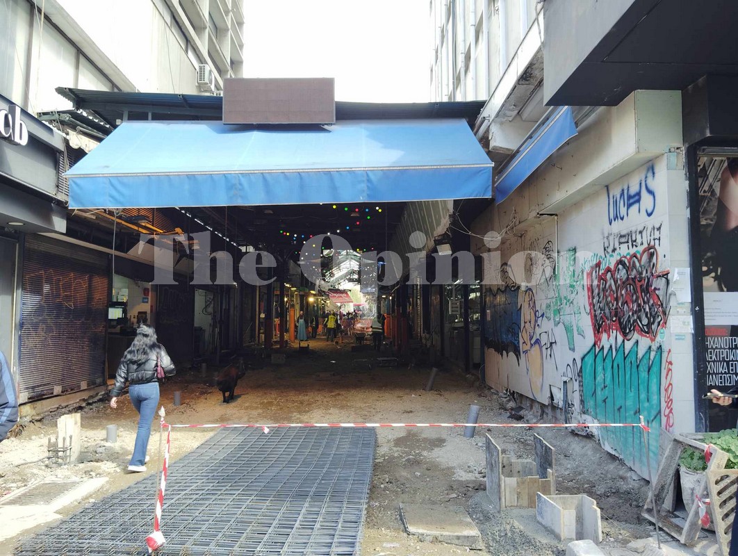 Σκόνη, χώματα, μηχανήματα έργου, κόκκινες απαγορευτικές κορδέλες και κατεβασμένα ρολά σε κάποια καταστήματα, στις οδούς όπου εργάζονται κάθε φορά τα συνεργεία, είναι η εικόνα που συναντά κανείς σήμερα στην ιστορική αγορά.