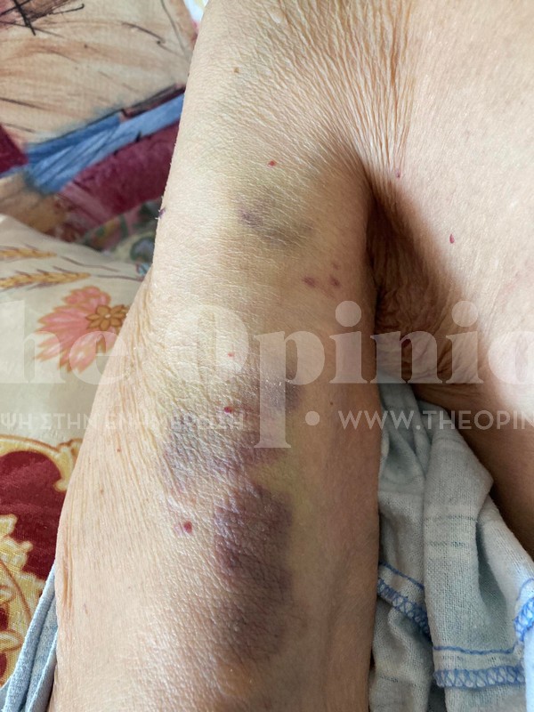 Συγκλονιστική είναι η φωτογραφία που παραχώρησε στο TheOpinion ο κ. Ασλανίδης η οποία δείχνει τις μελανιές που υπέστη ο ηλικιωμένος πατέρας του, αποτέλεσμα της προσπάθειας του νοσηλευτικού προσωπικού να τον… «συνετίσει».