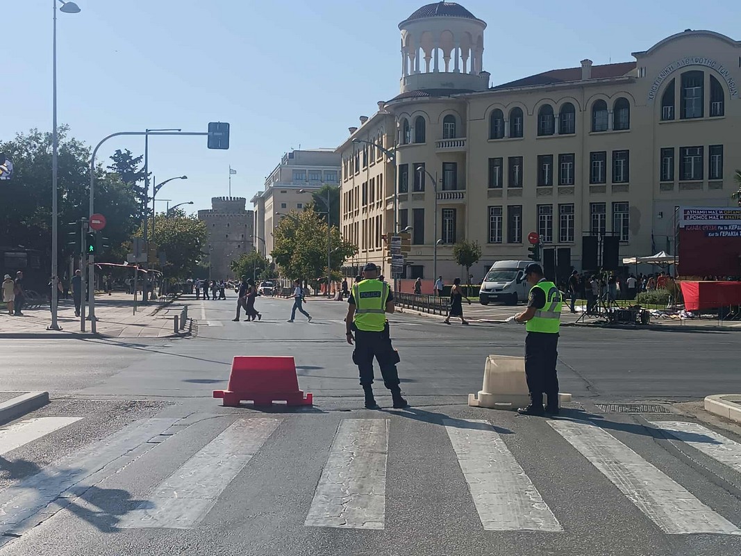 Λίγο πριν τις 5 το απόγευμα του Σαββάτου ξεκίνησαν να στήνονται τα μπλόκα της αστυνομίας γύρω από το Βελλίδειο και τον χώρο της Διεθνούς Έκθεσης Θεσσαλονίκης.