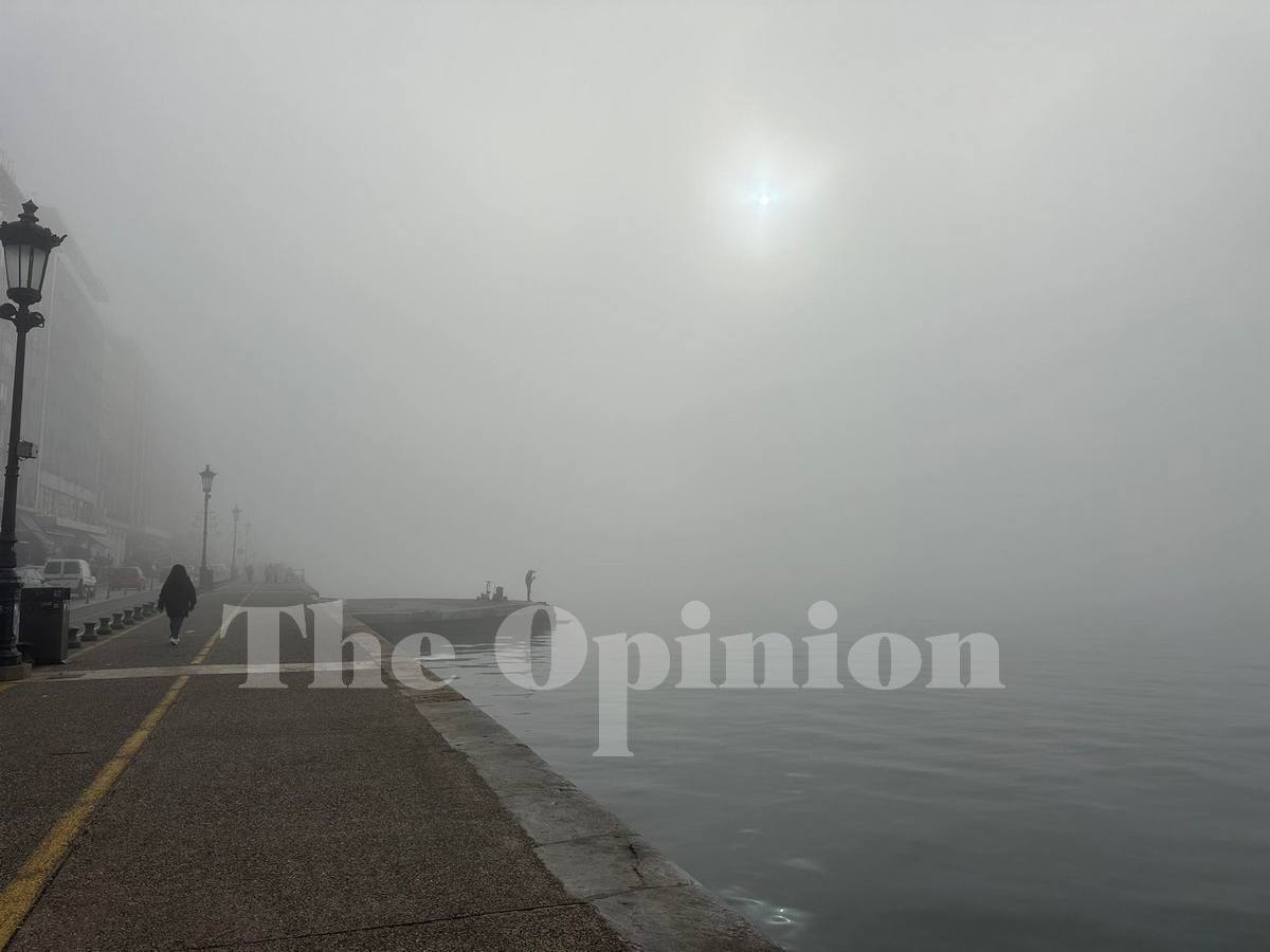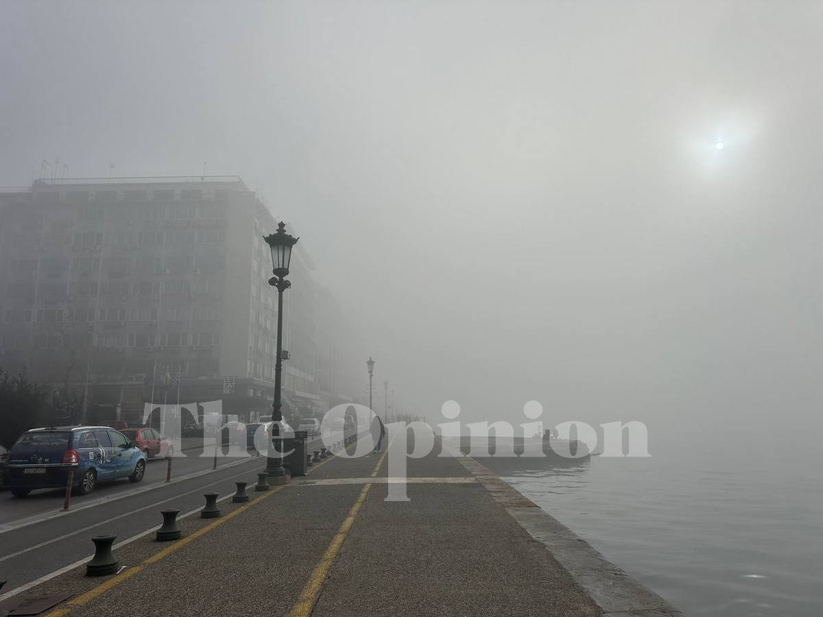 Με ένα πέπλο ομίχλης καλύφθηκε εδώ και λίγα λεπτά το κέντρο της πόλης, ιδιαίτερα στο παραλιακό μέτωπο της Θεσσαλονίκης.