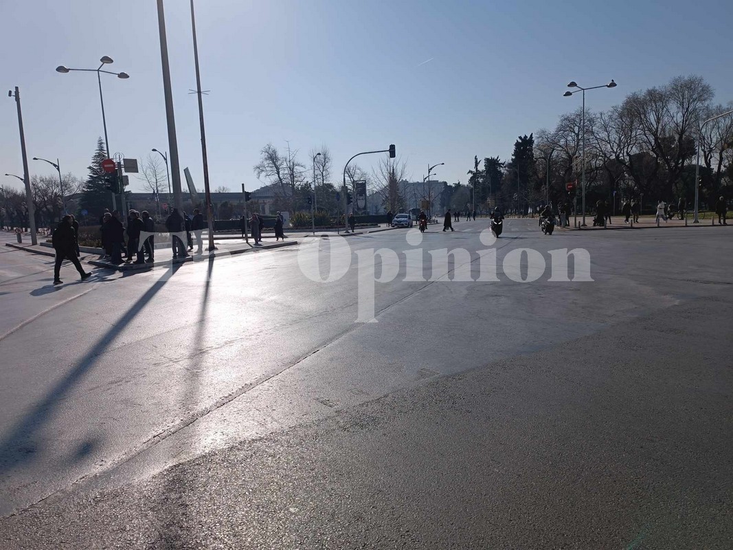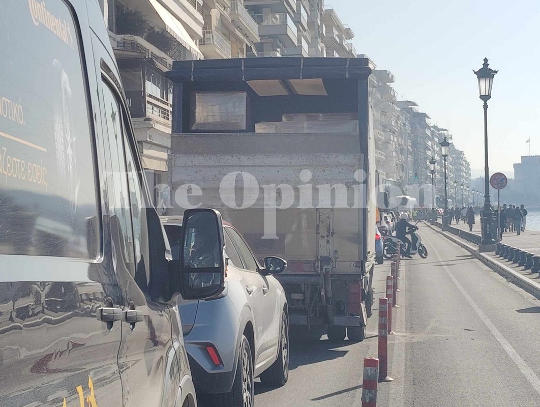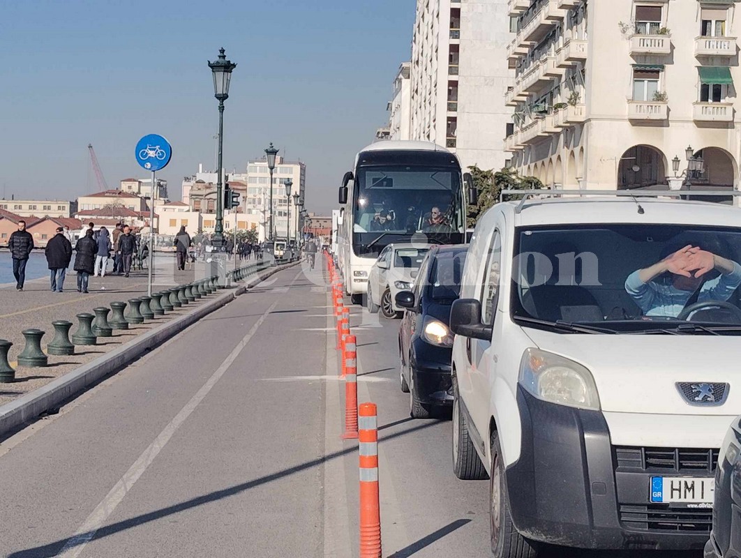 Μποτιλιάρισμα στη λεωφόρο Νίκης λίγα μόλις λεπτά μετά την εντυπωσιακή είσοδο δεκάδων τρακτέρ στη Θεσσαλονίκη.