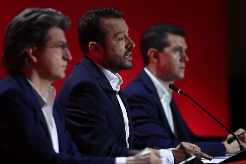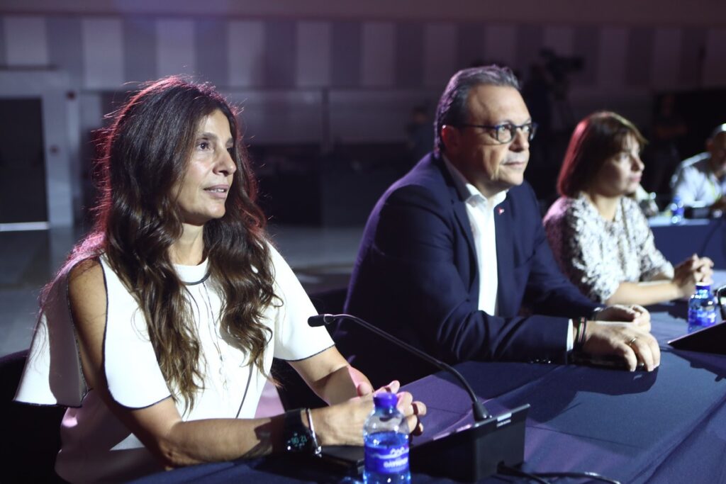 Στο πάνελ δίπλα στο Νίκο Παππά είναι ο νέος εκπρόσωπος τύπου Παυσανίας Παπαγεωργίου και ο νέος υπεύθυνος επικοινωνίας Κώστας Αγόρης.